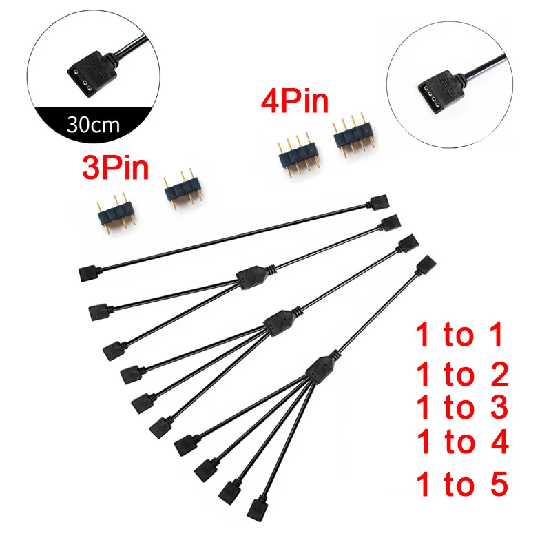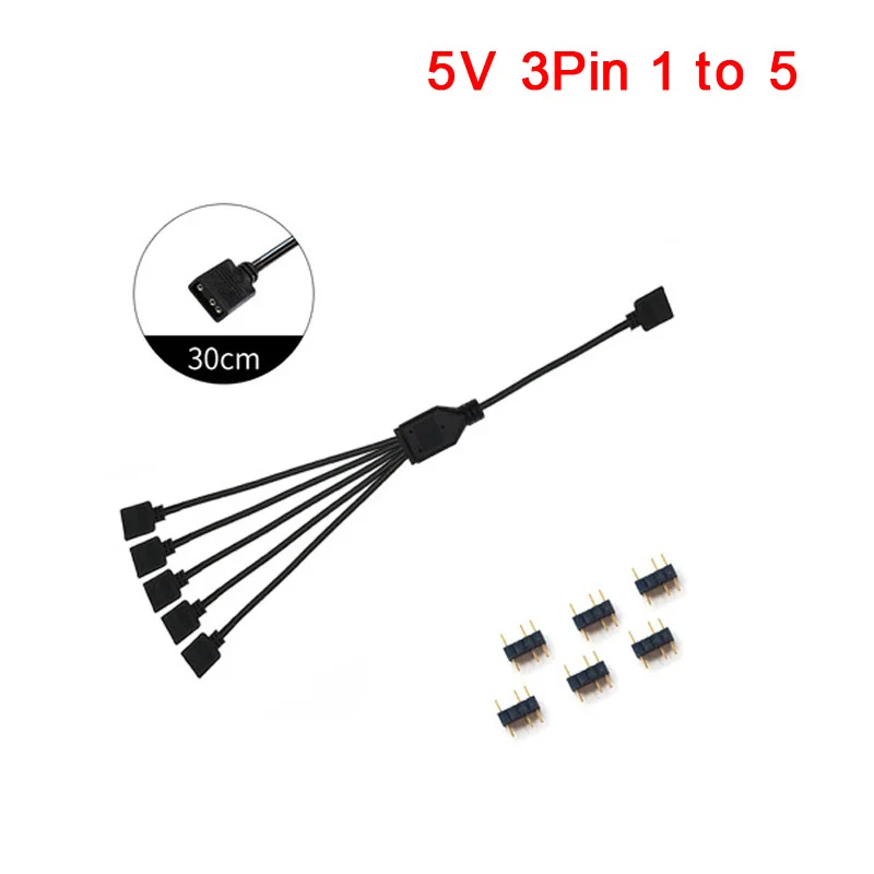 Comprar Adaptador de Cable de extensión ARGB 5V 3 pines 30cm 1 a 1 2 3 4 5 12v 4 pines Cable divisor RGB para MSI A SUS ASRock AURA LED