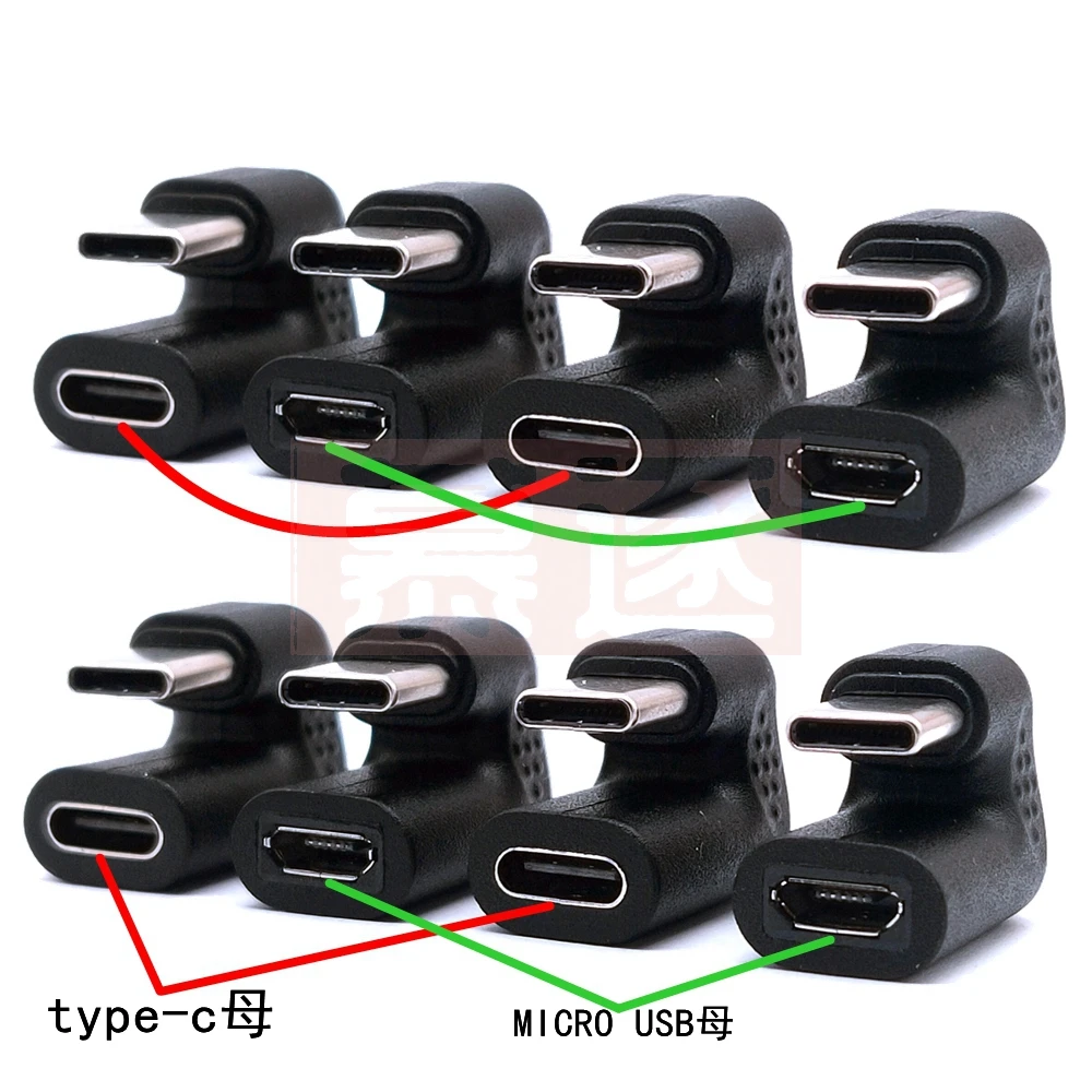 Comprar Adaptador de cable de extensión de carga y transmisión de datos hembra, dispositivo con ángulo de 180 grados hacia arriba y abajo, tipo C, USB-C a Micro USB/tipo c, 360