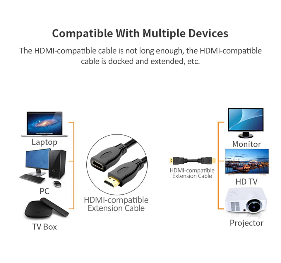 Comprar Adaptador de Cable de extensión compatible con HDMI 4K, conector macho a hembra, extensor compatible con HDMI para PC, TV Box, PS4, proyector de ordenador portátil