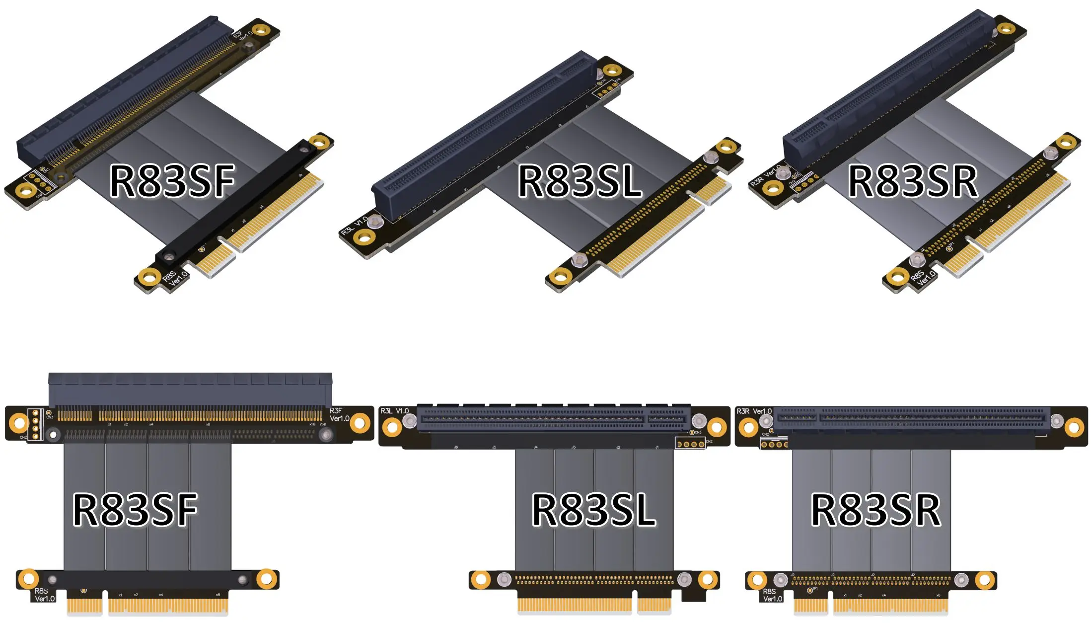 R83SL-PW: PCIe x8 a PCIe x16 a ángulo vertical de 90 grados con cable de alimentación