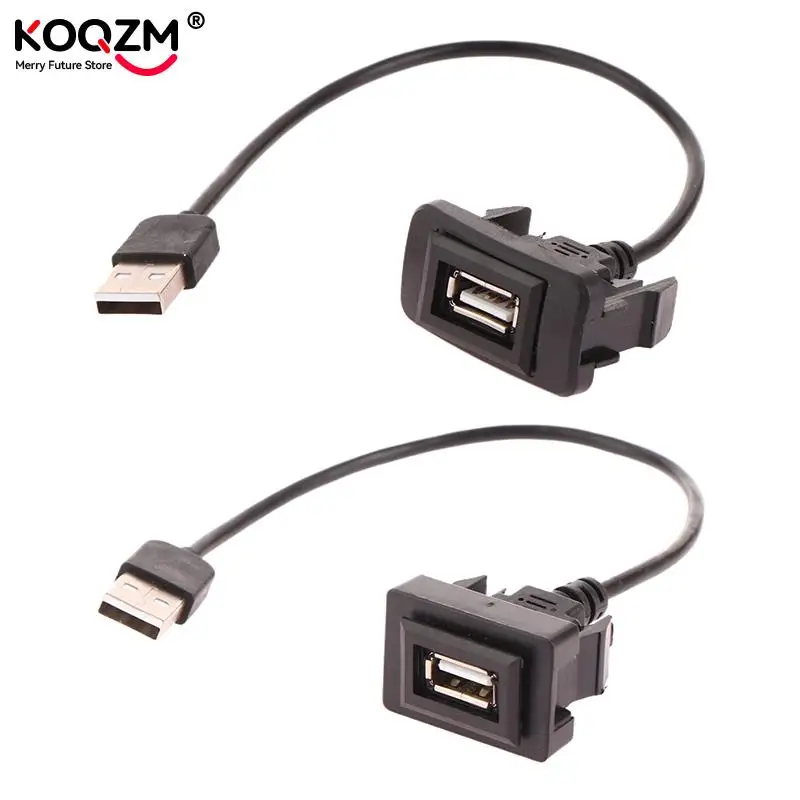 Comprar Adaptador de Cable de extensión de plástico negro macho a hembra para salpicadero de coche, Panel de puerto USB 2,0, montaje empotrado, para Vigo RAV4, 1 unidad