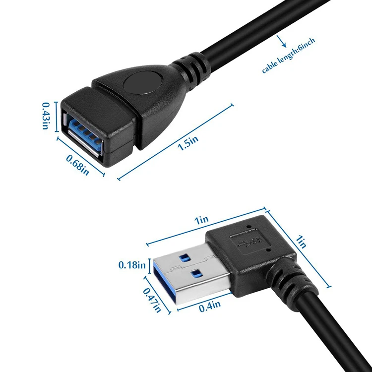 Adaptador de cable de extensión USB 3,0 macho a hembra codo izquierdo y derecho 90 grados USB3.0 datos ángulo recto