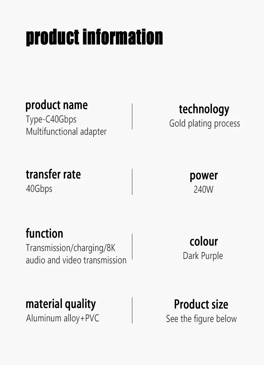 Función 1:Compatible con Thunderbolt 3 y USB 3,2/3,1/3,0/2,0, con una velocidad de transmisión máxima de 40Gbps