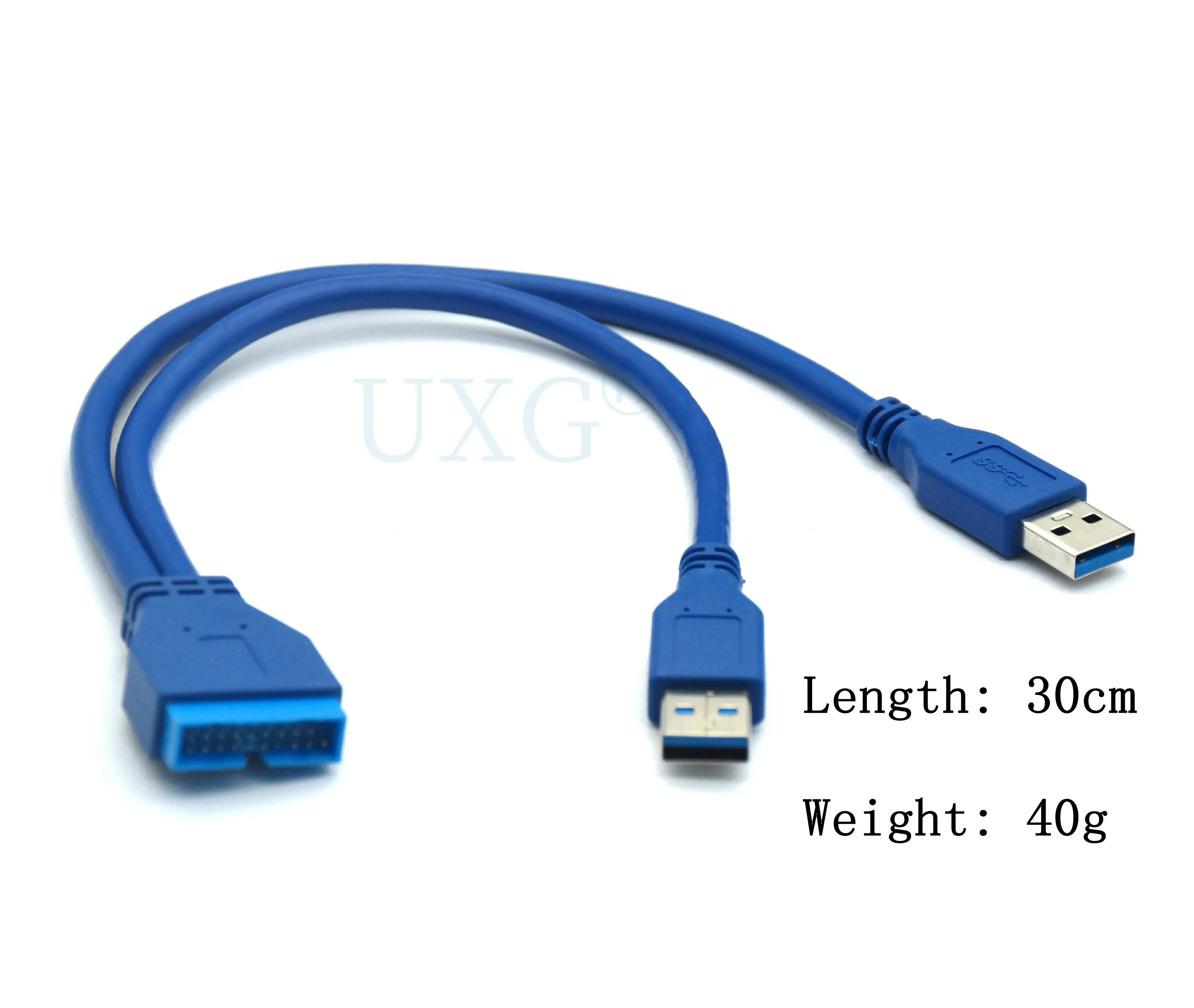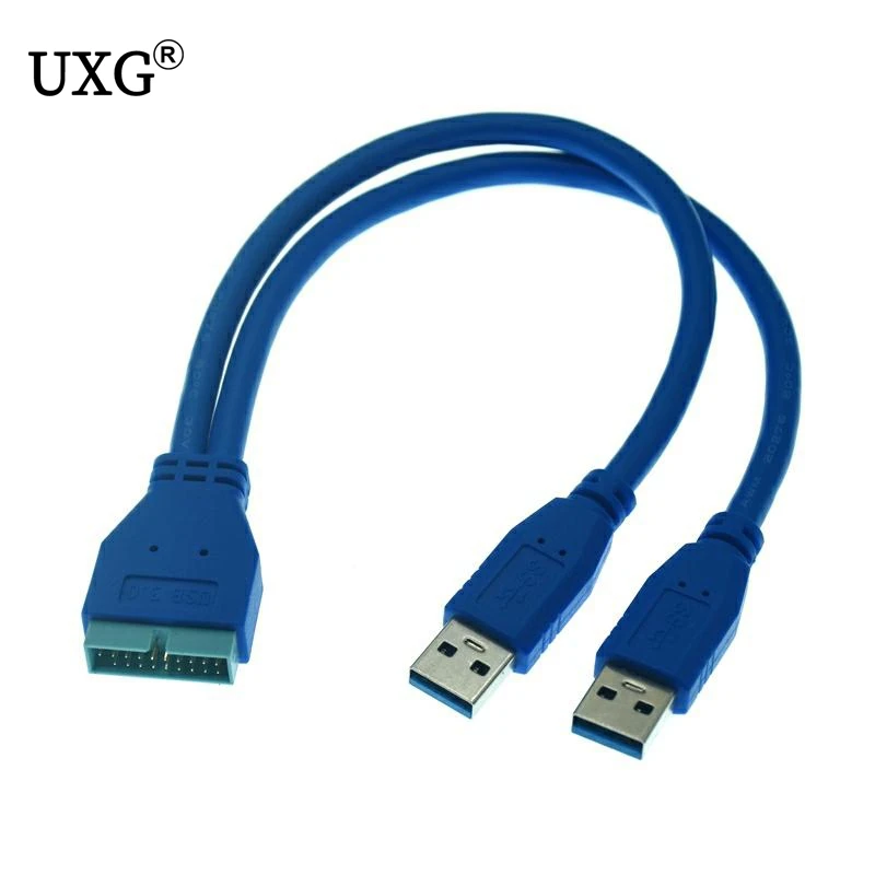 Comprar Adaptador de Cable de extensión USB, conector macho de 20 pines, doble puerto USB 3,0 tipo A 20 pines, cabezal de placa base macho, 25cm, 50cm