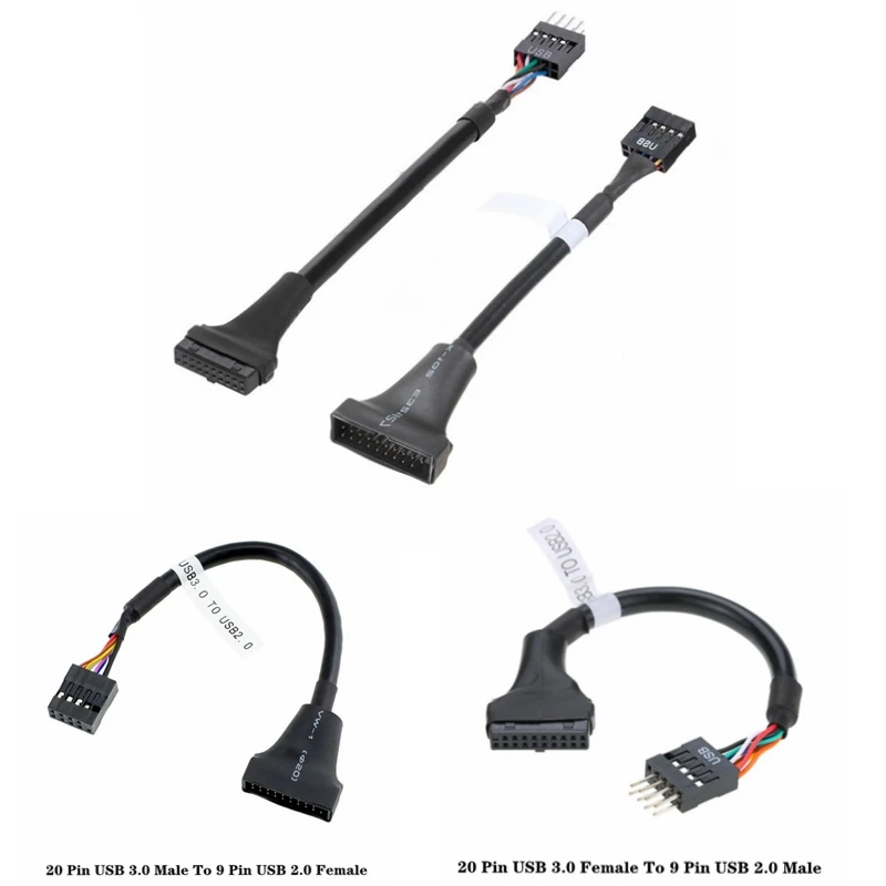 Comprar Adaptador de Cable hembra a macho para PC y ordenador, carcasa de 9 pines macho a placa base USB 2,0, hembra de 20 pines, color negro, 1 unidad