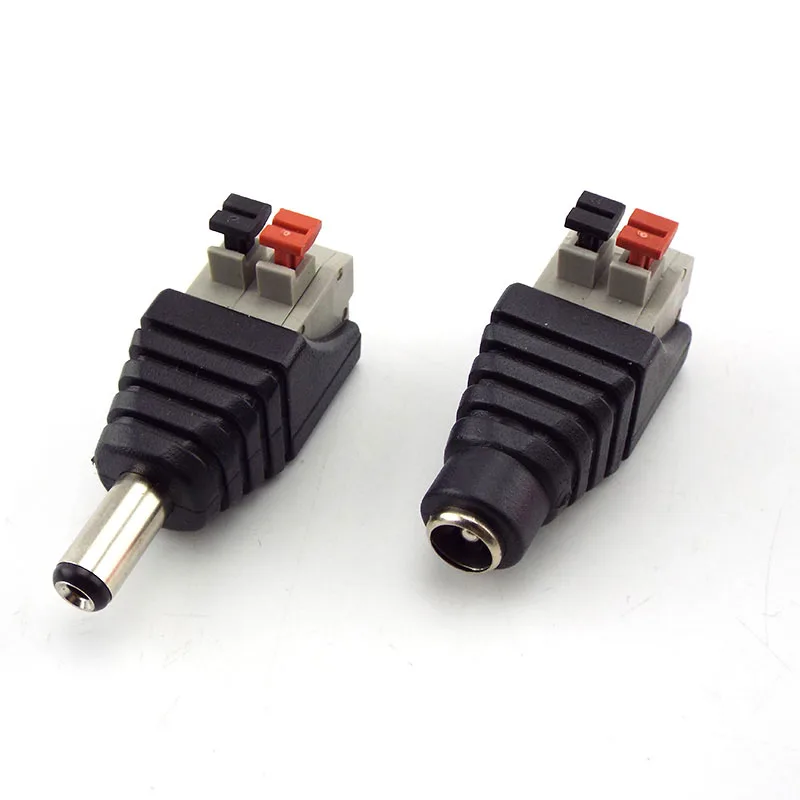 Enchufes de Cable macho y hembra de alimentación CC/RCA de 2, adaptador de conector de presión de Cable de crimpado sin soldadura para altavoces, luces LED de Audio CCTV