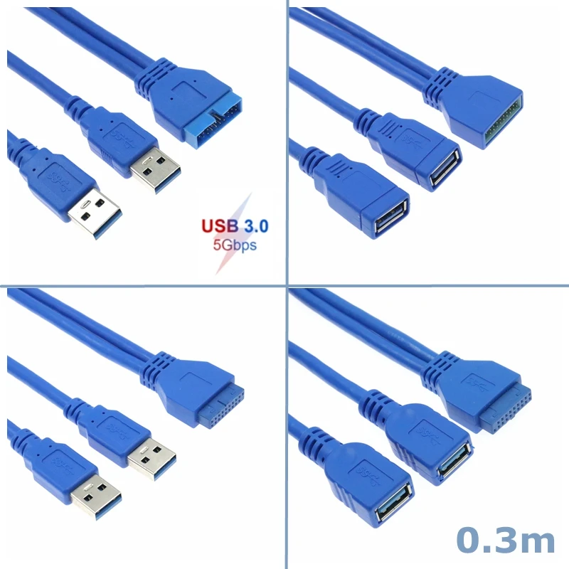 Comprar Adaptador de Cable macho A hembra para placa base de ordenador, Cable de expansión USB de 20 pines, 0,3 m, alta velocidad, doble 2 puertos USB 3,0 A