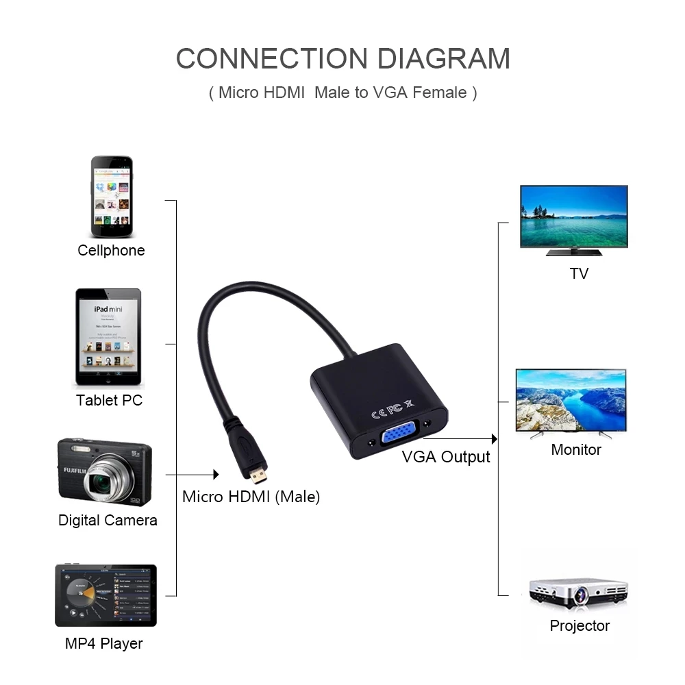 Solución conveniente y rentable para conectar sus dispositivos Micro HDMI a sus monitores o proyectores VGA.