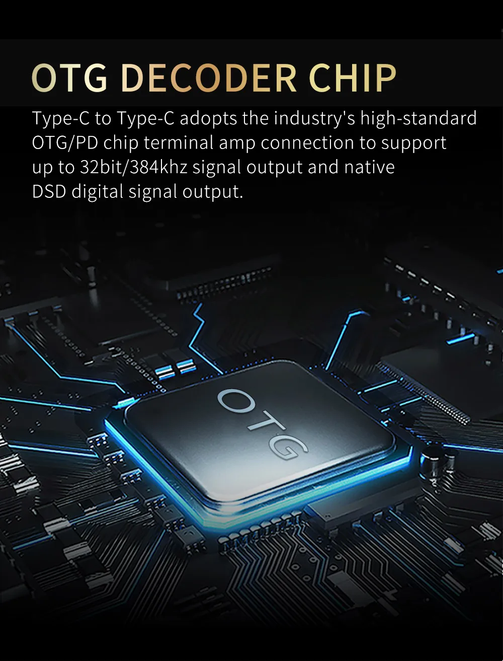 3. OTG CHIP Tipo-C a Tipo-C adopta la conexión de amplificador de terminal de chip OTG/PD de alto estándar de la industria para admitir salida de señal de hasta 32bit/384kHz y salida de señal digital DSD nativa.