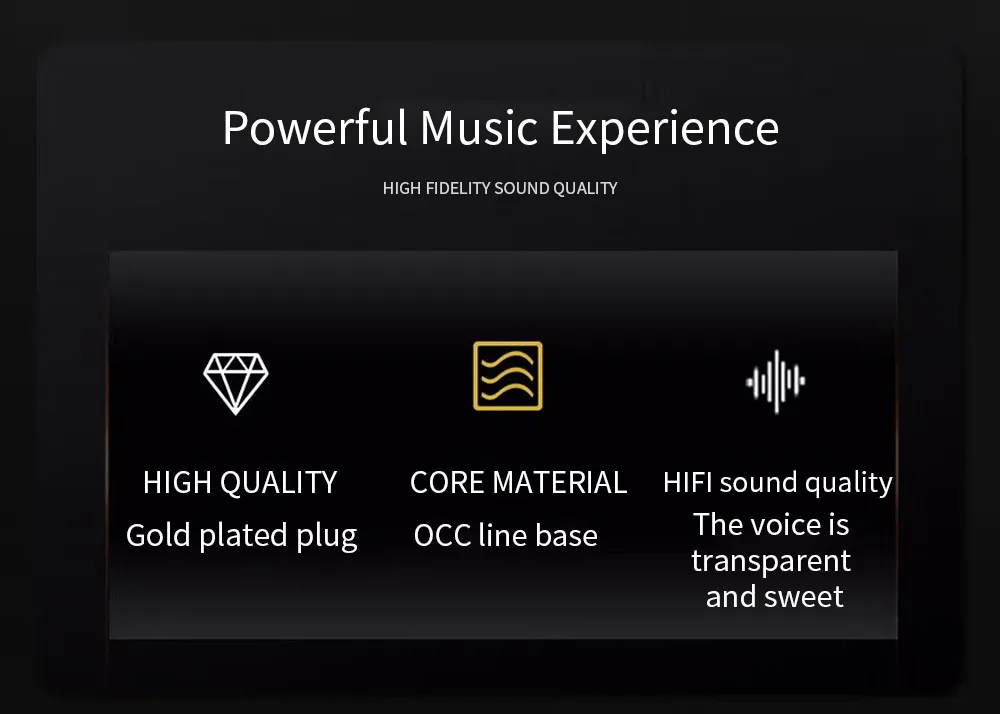 2. LA ECUALIZACIÓN DE LA TRI-BAND ENTIENDE TUS OREJOS PICKY El núcleo del cable adopta oCC, los bajos medios son completos y suaves, y los agudos son claros, lo que brinda capas distintas y equilibradas de tres frecuencias, y efectos de música de campo de sonido natural para satisfacer sus diferentes estilos musicales.