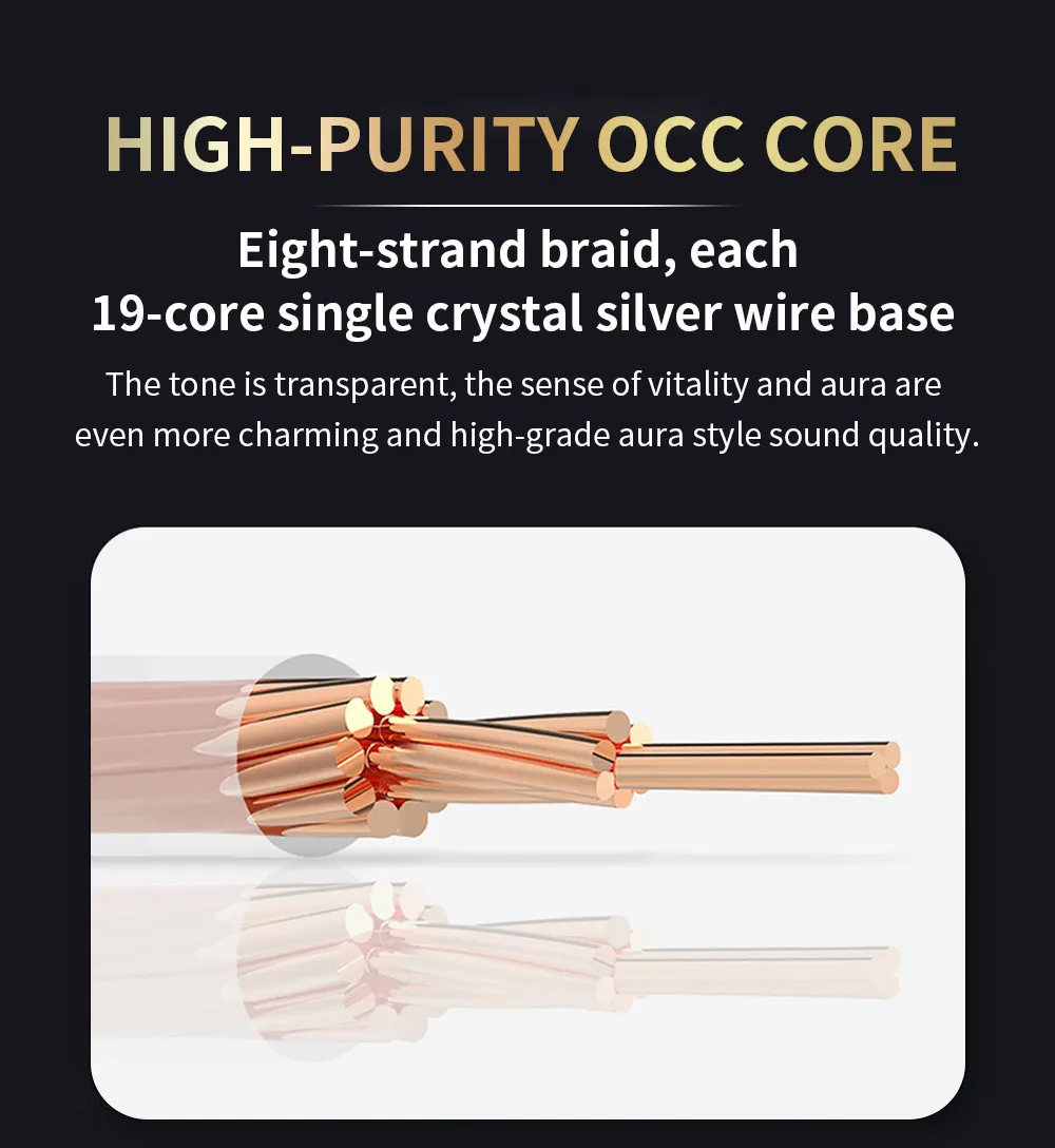 4. NÚCLEO OCC DE ALTA PUREZA Trenza de ocho hebras, cada base de alambre de plata de un solo cristal de 19 núcleos El tono es transparente, la sensación de vitalidad y Aura son aún más encantadoras y de alta calidad de sonido de estilo aura.
