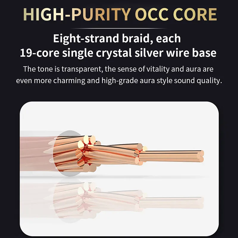 4. NÚCLEO OCC DE ALTA PUREZA Trenza de ocho hebras, cada base de alambre de plata de un solo cristal de 19 núcleos El tono es transparente, la sensación de vitalidad y Aura son aún más encantadoras y de alta calidad de sonido de estilo aura.