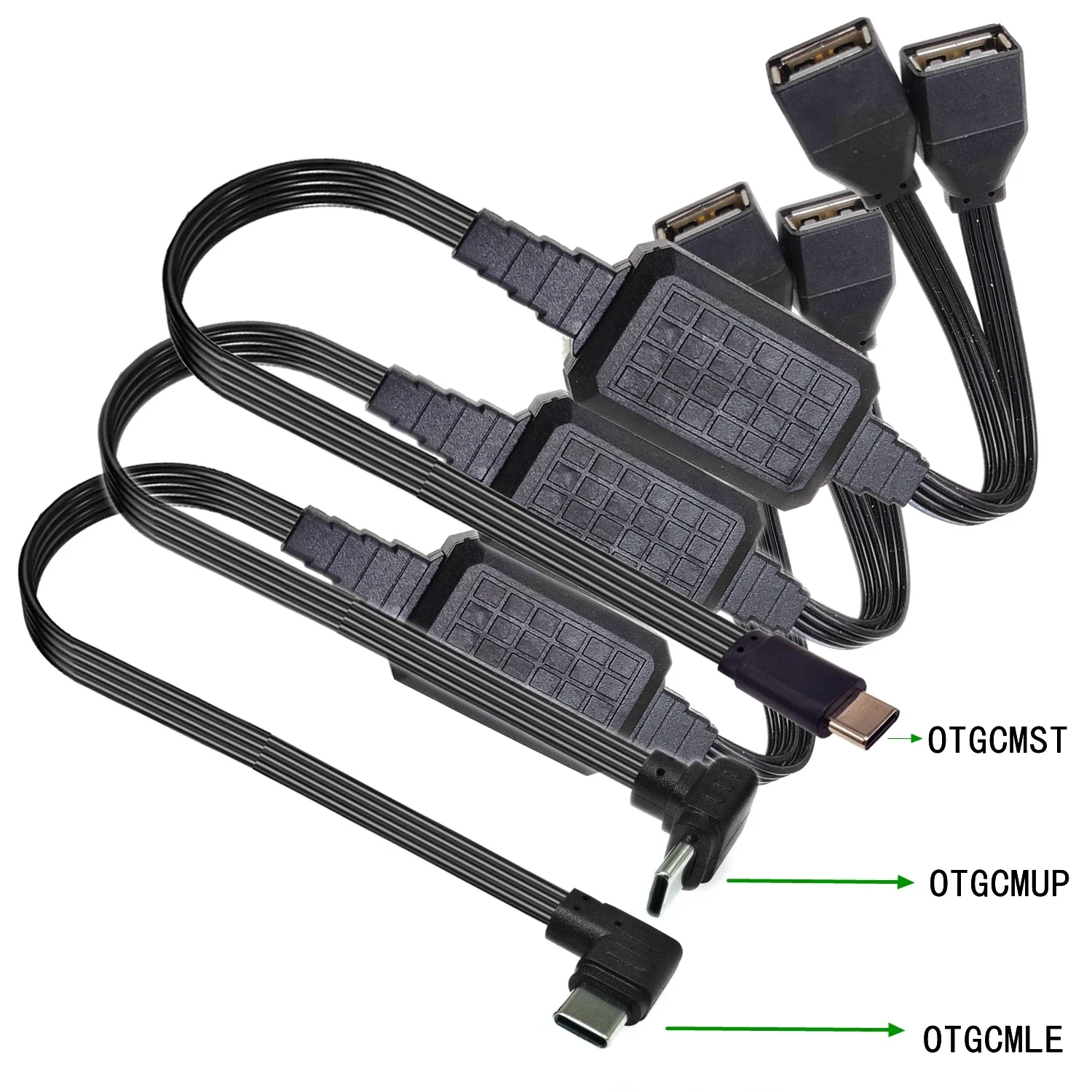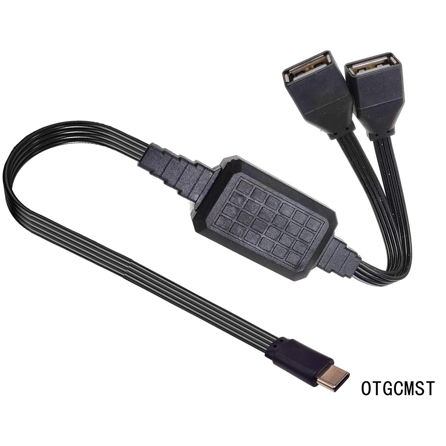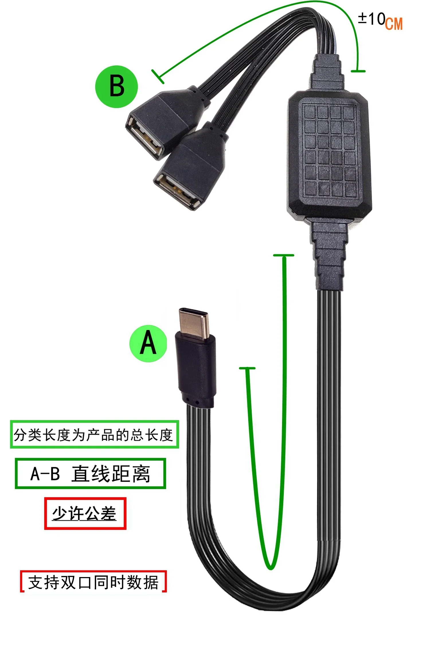 Adaptador USBC a 2 USB dos USBA, fuente de alimentación de datos dual plana, convertidor de cable OTG, Puerto múltiple USB2.0, 20CM 30CM 40CM 1.USB2.0: TOTG, una de cada dos líneas de datos, Ambas admiten datos. 2. Longitud 0,2 M 0,3 M 0,4 M