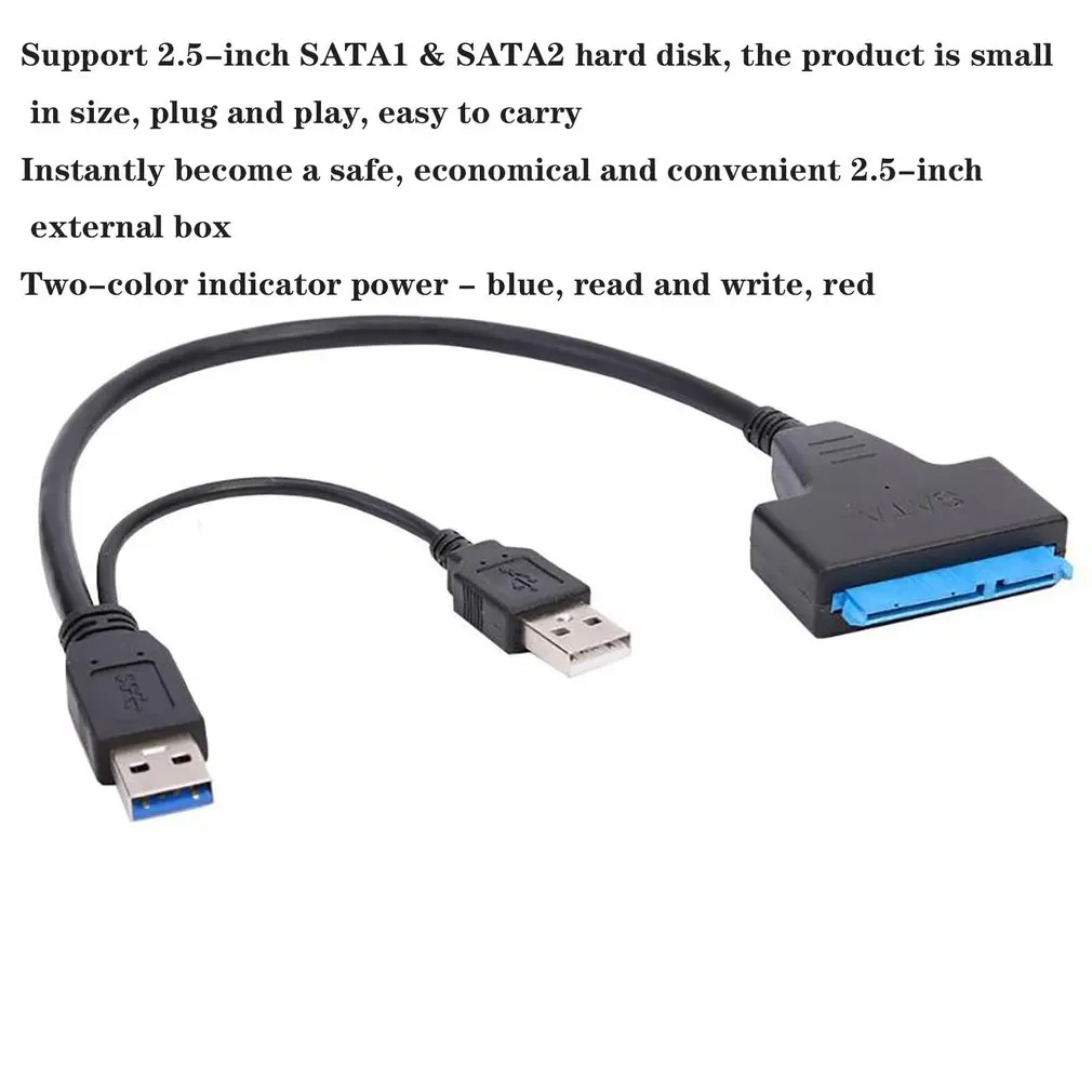 Comprar Adaptador de Cable SATA a USB 3,0/2,0, hasta 6 Gbps, pines 7 + 15/22, compatible con disco duro externo SSD HDD de 2,5 pulgadas, Sata III