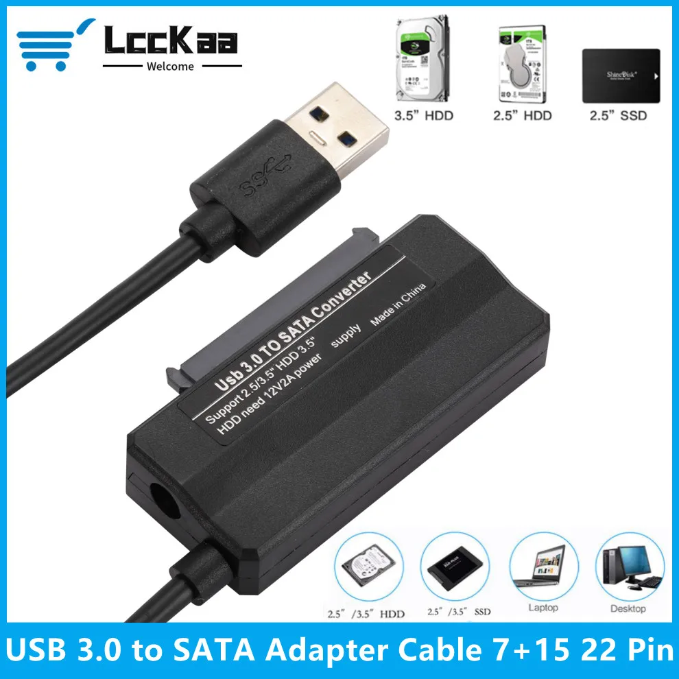 Comprar Adaptador de Cable SATA a USB 3,0, Cable USB 3,0 a SATA compatible con 7 + 15 22 pines para 2,5 3,5 pulgadas, Conector de disco duro externo HDD SSD