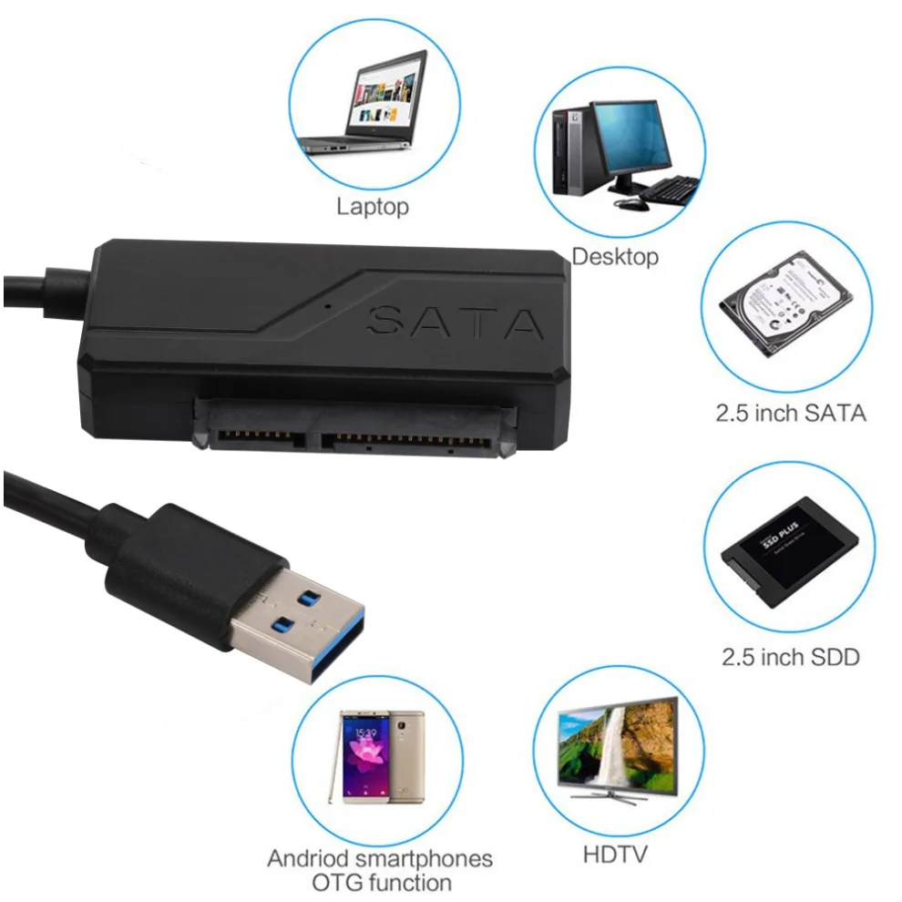 1. Adaptador SATA III USB 3,0 Cable Disco duro externo USB a Serial ATA 22pin Convertidor Disco duro 5 Gbps para 2,5 "HDD/SSD.