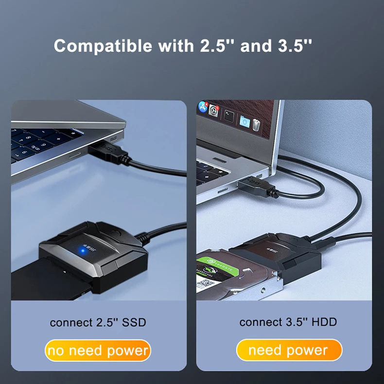 Note: This cable runs 3.5'' SSD/HDD need power, if your devices is 3.5'' SSD/HDD, please choose the option with power adapter