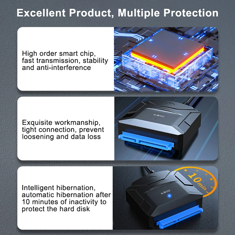 Comprar Adaptador de Cable SATA a USB 3,0 para disco duro externo HDD SSD de 2,5 y 3,5 pulgadas, adaptador SATA USB 3,0 a Sata III, convertidor de Cable 3 0