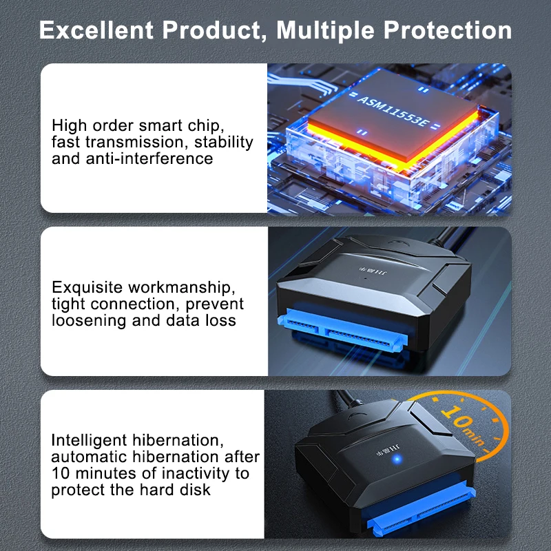 Comprar Adaptador de Cable SATA a USB 3,0 para disco duro externo HDD SSD de 2,5 y 3,5 pulgadas, adaptador SATA USB 3,0 a Sata III, convertidor de Cable 3 0