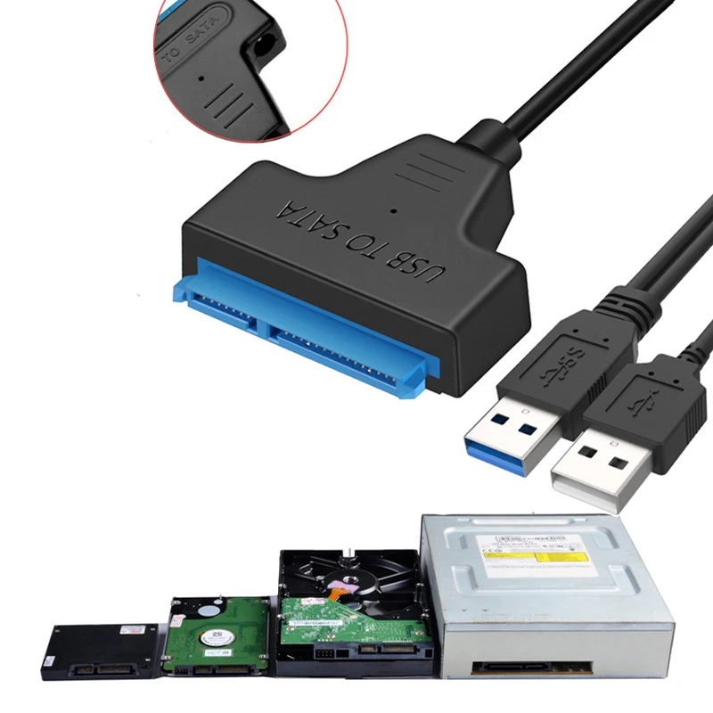 Comprar Adaptador de Cable Sata a USB 3,0 con fuente de alimentación de 12V 2A para disco duro SSD HDD de 2,5 y 3,5 pulgadas conector externo de 22 pines
