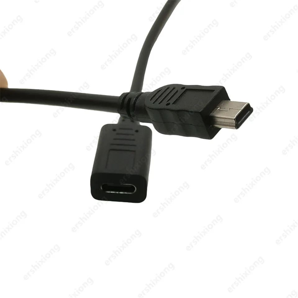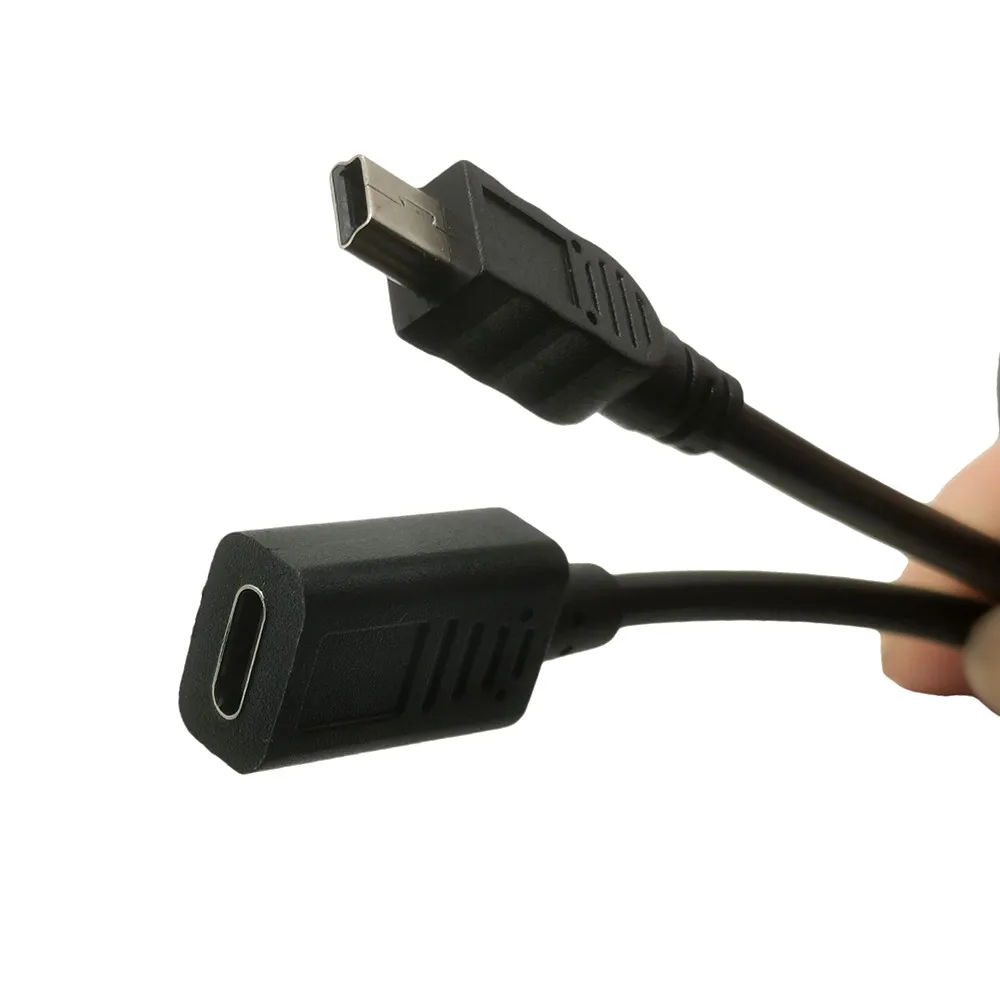 Comprar Adaptador de Cable de sincronización de datos de carga tipo C, USB 3,1 hembra a 5 pines, Mini USB macho, 0,25 M