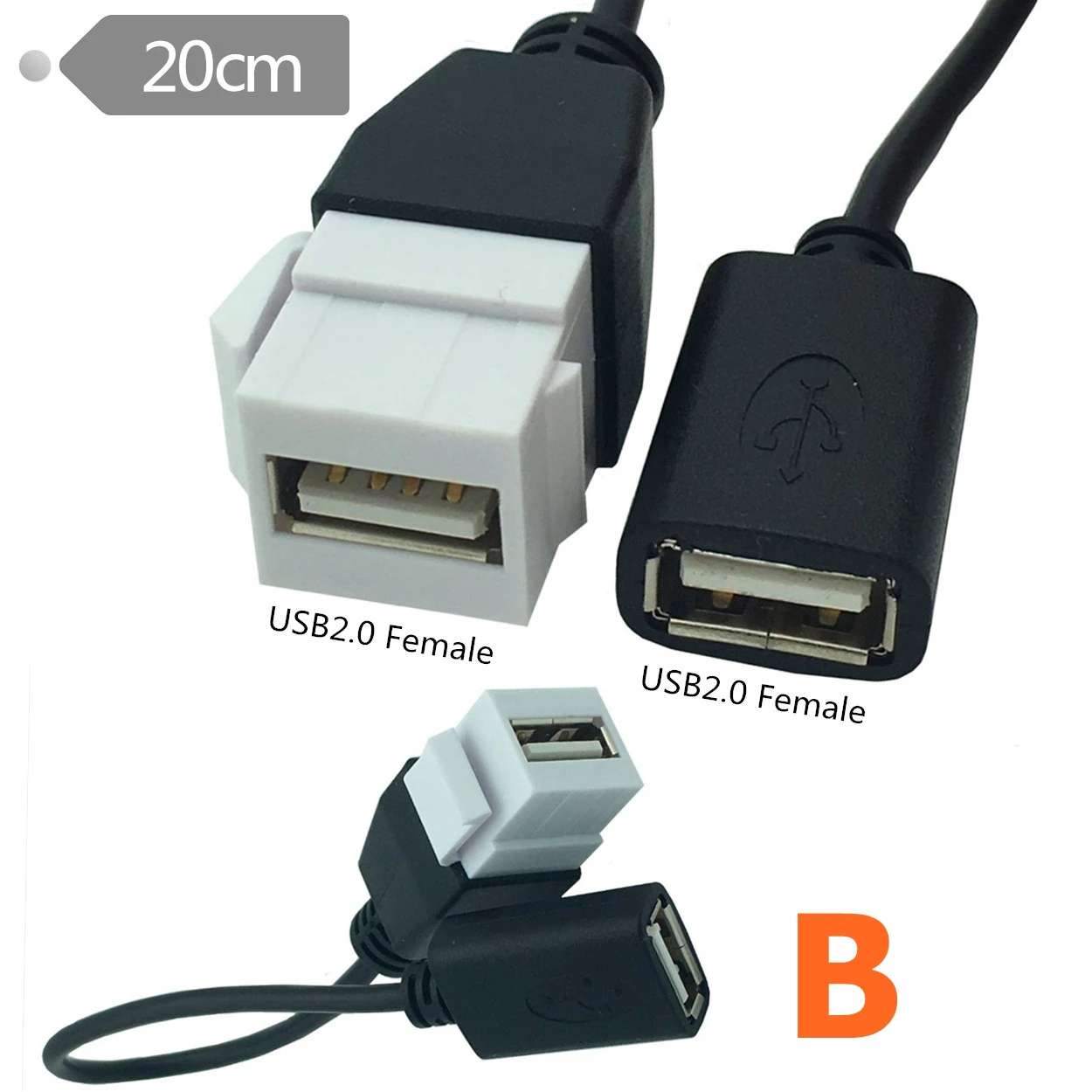 Keystone Jack acoplador conector Cable adaptador USB 2,0 A macho a hembra extensión convertidor 0,2 m