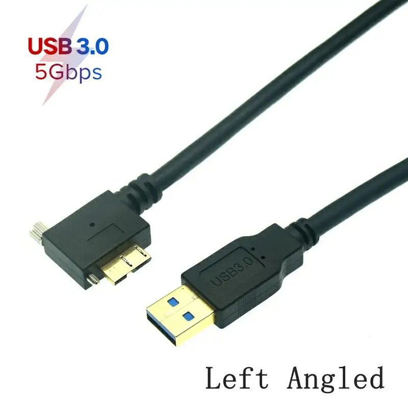Comprar Adaptador de Cable USB 3,0 A macho A Micro B, tornillo de bloqueo con ángulo de 90 grados arriba/abajo/izquierda/derecha, 30cm x 300cm