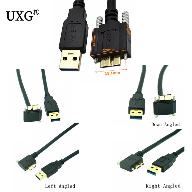 Comprar Adaptador de Cable USB 3,0 A macho A Micro B, tornillo de bloqueo con ángulo de 90 grados arriba/abajo/izquierda/derecha, 30cm x 300cm