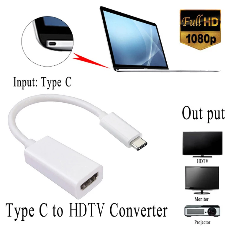 Comprar Adaptador de Cable USB 3,1 tipo C a HDMI, convertidor compatible con USB-C tipo C a TV, para MacBook Air, Samsung GALAXY Note 8, 9, S9