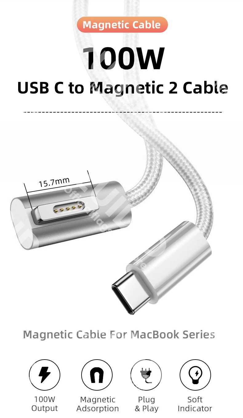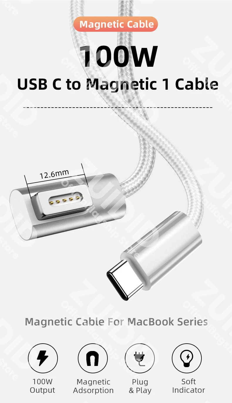 Comprar Adaptador de Cable USB C a magnético 1/2 para Apple MacBook Air/Pro, convertidor de carga PD de 100W, cargador de Cable de carga rápida