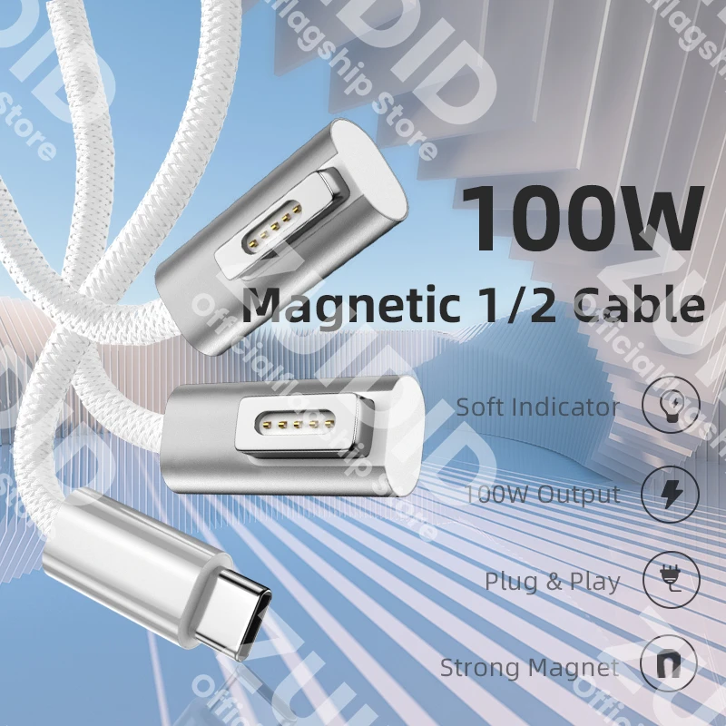 Comprar Adaptador de Cable USB C a magnético 1/2 para Apple MacBook Air/Pro, convertidor de carga PD de 100W, cargador de Cable de carga rápida
