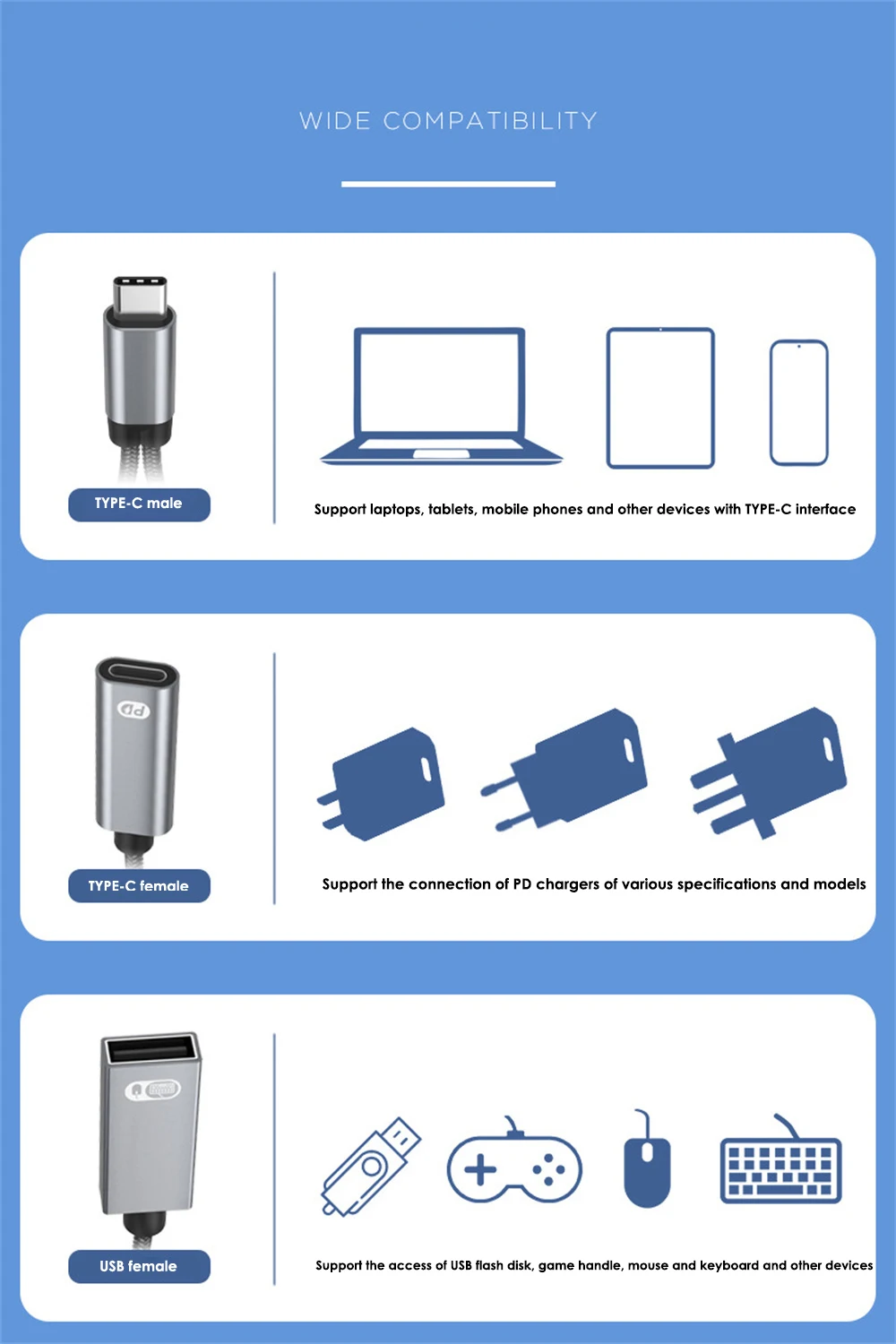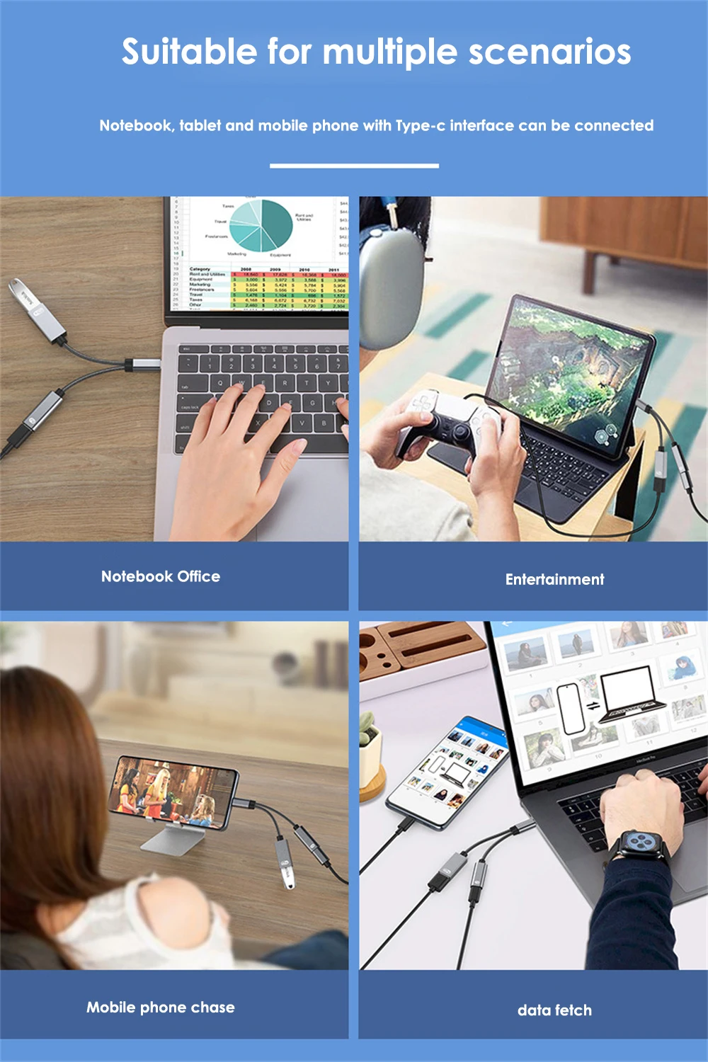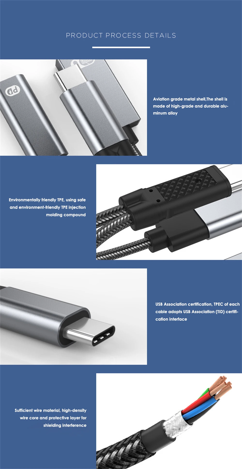 2. 【Ligero y fácil de transportar】El divisor USB tipo C está hecho de carcasa de aleación de aluminio y cuerda de nailon trenzada, puede llevarlo fácilmente y no ocupa espacio.