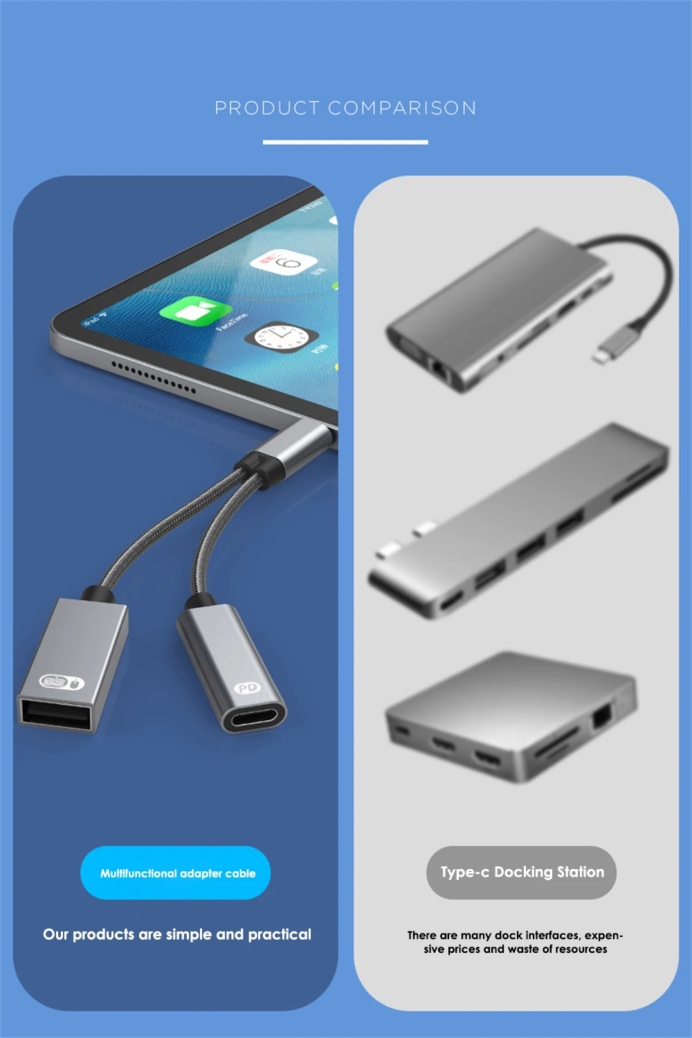 1. 【Divisor Usb C】 Este divisor USB tiene dos puertos, es un puerto tipo C que admite carga rápida Max PD 60W y otro es un puerto USB A 2,0, que proporciona una alta transferencia de datos y carga de su dispositivo simultáneamente.