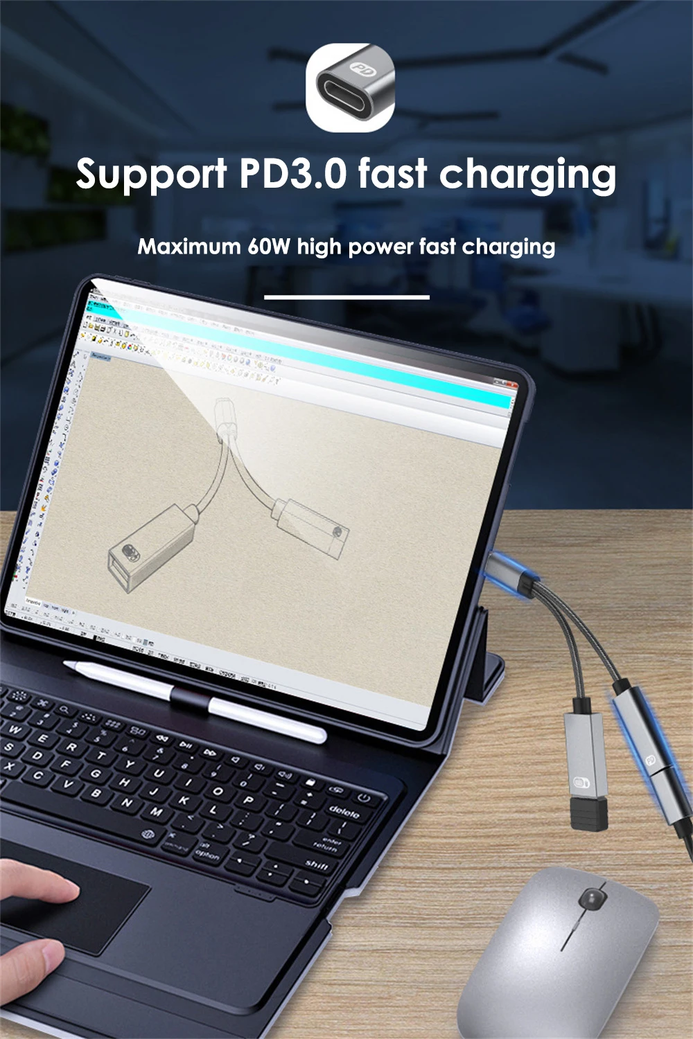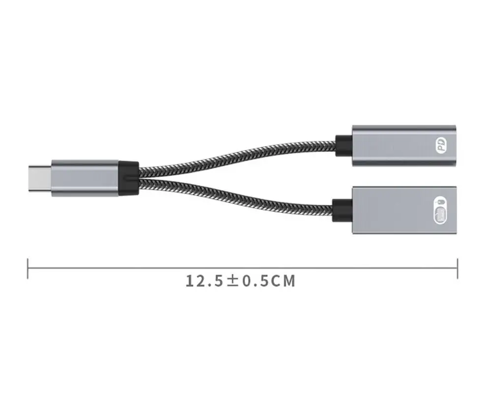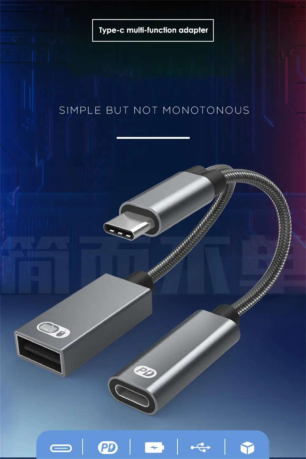 Adaptador de Cable USB C OTG 2 en 1 tipo C macho a USB C hembra puerto de carga 60W PD carga rápida con adaptador divisor USB