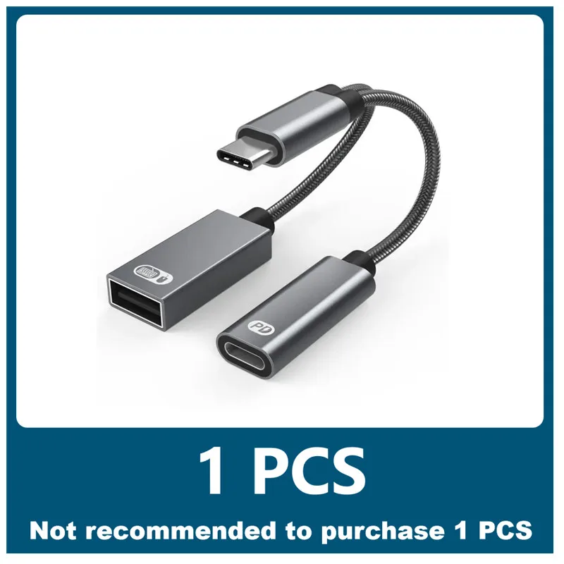 Adaptador de Cable USB C OTG 2 en 1 tipo C macho a USB C hembra puerto de carga 60W PD carga rápida con adaptador divisor USB