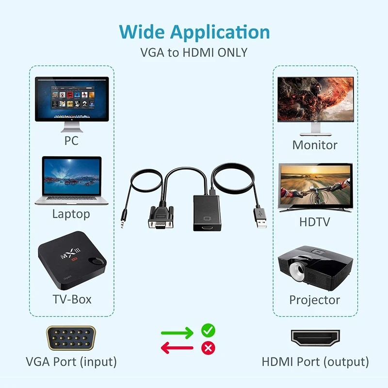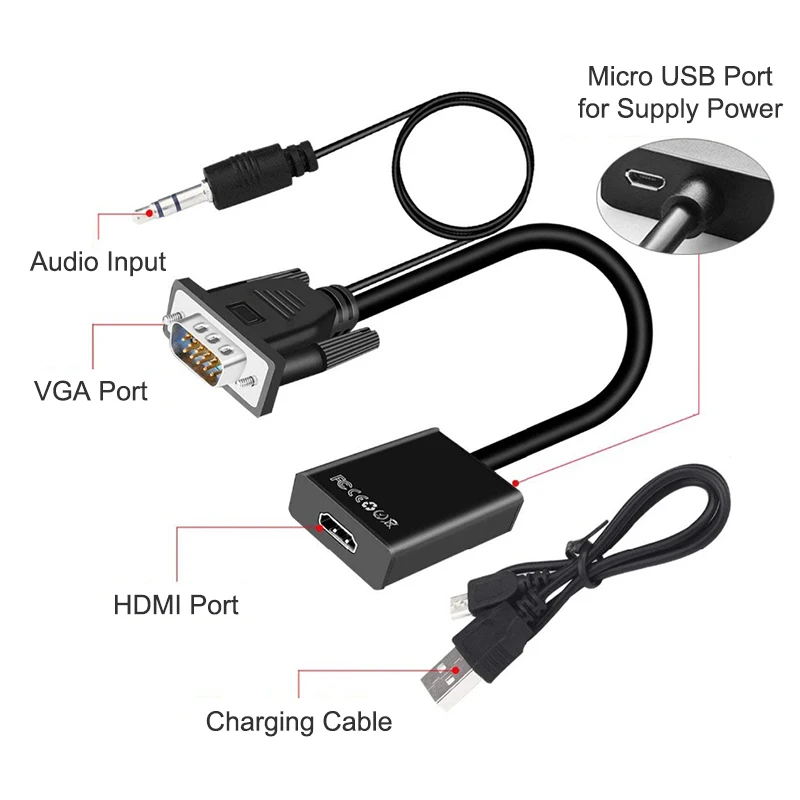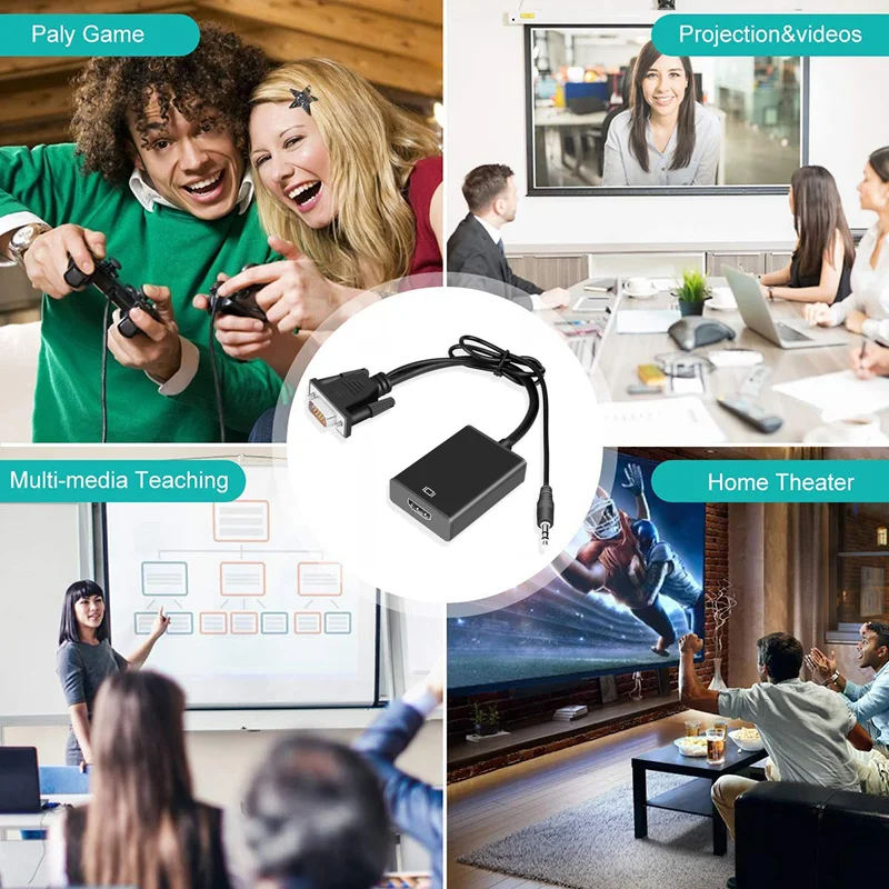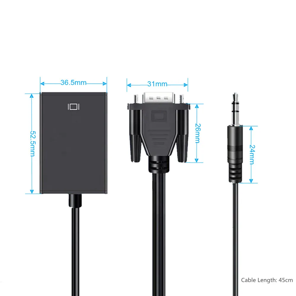 Comprar Adaptador de Cable VGA a HDMI, convertidor VGA macho a HDMI hembra con salida de Audio, adaptador VGA HDMI de 1080P para PC, portátil, proyector HDTV