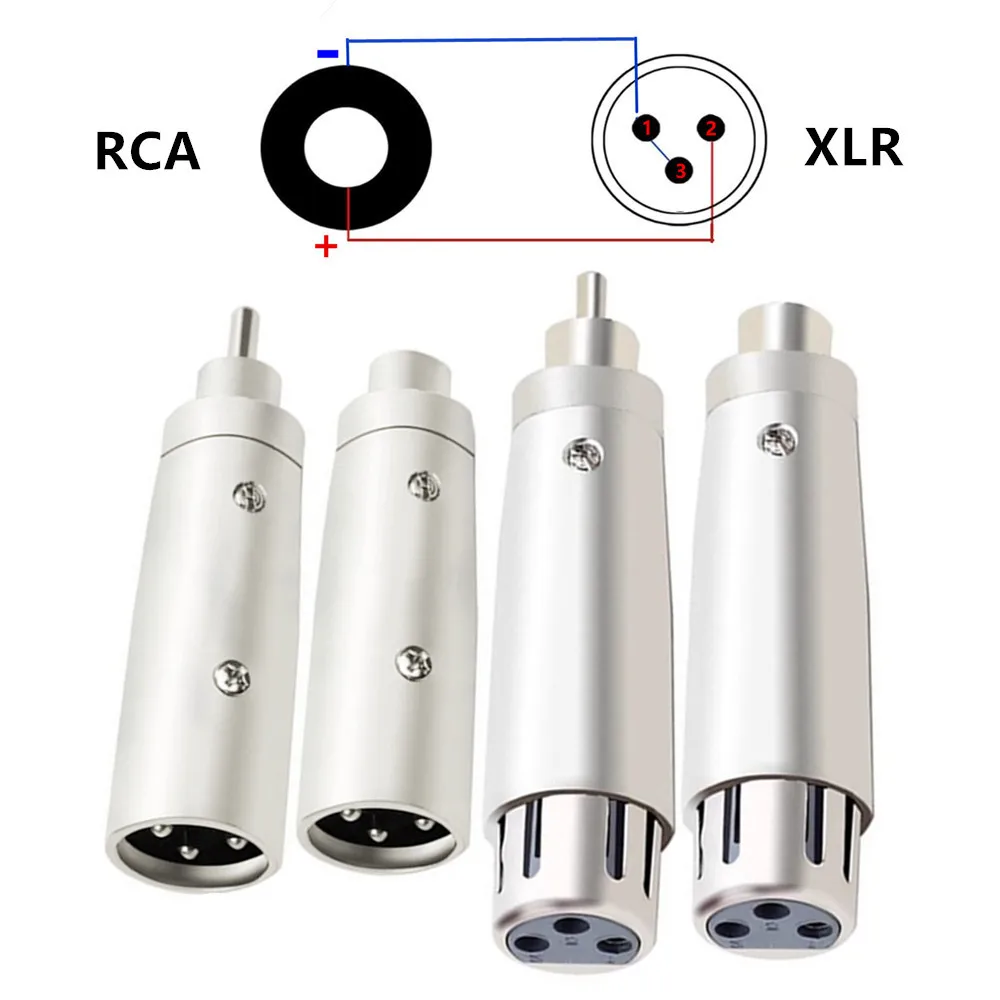 2 uds 3pin XLR hembra a 6,35mm macho Mono Jack adaptador de plomo micrófono 3pin XLR macho a RCA hembra adaptador de líder niquelado