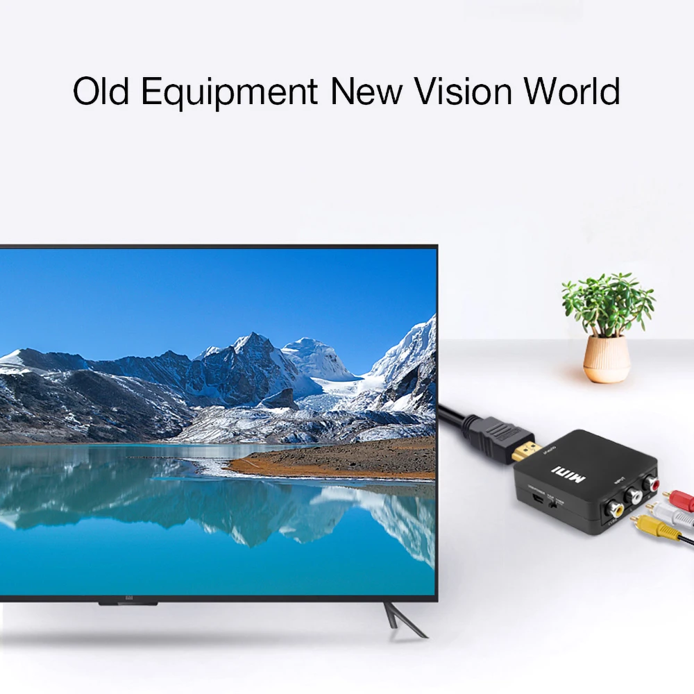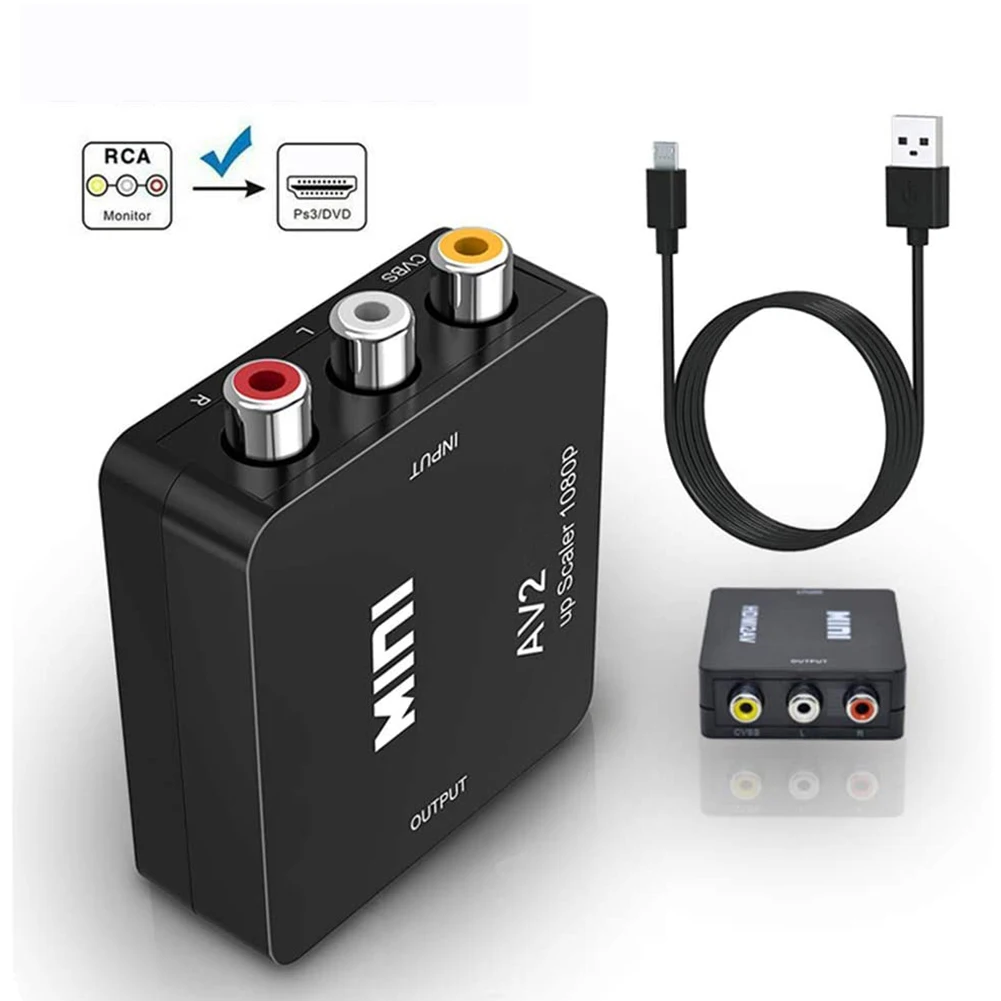 Comprar Adaptador de caja convertidor de vídeo compatible con AV a HDMI, RCA CVSB L/R, vídeo a HD 1080P, adaptador escalador compatible con HDMI, convertidor HDTV