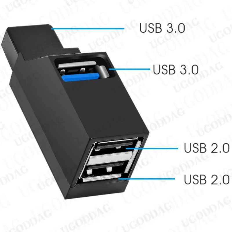 Comprar Adaptador de caja divisora de transferencia de datos, Hub Universal Mini de 3 puertos USB 3,0 de alta velocidad para MacBook Pro, PC, portátil, multipuerto