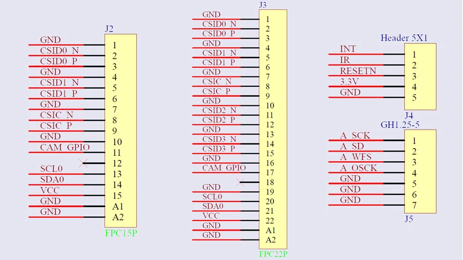 [] La interfaz de la CSI-2, con asiento FPC de 22 Pines, espaciado 0,5mm, se encuentra en la parte posterior del módulo C790.