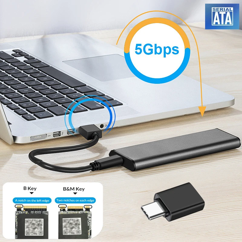 Comprar Adaptador de carcasa M.2 SATA SSD USB 3,1 Gen1 5Gbps caja sin herramientas para llave B + M SATA NGFF SSD tamaño 2230/2242/2260/2280