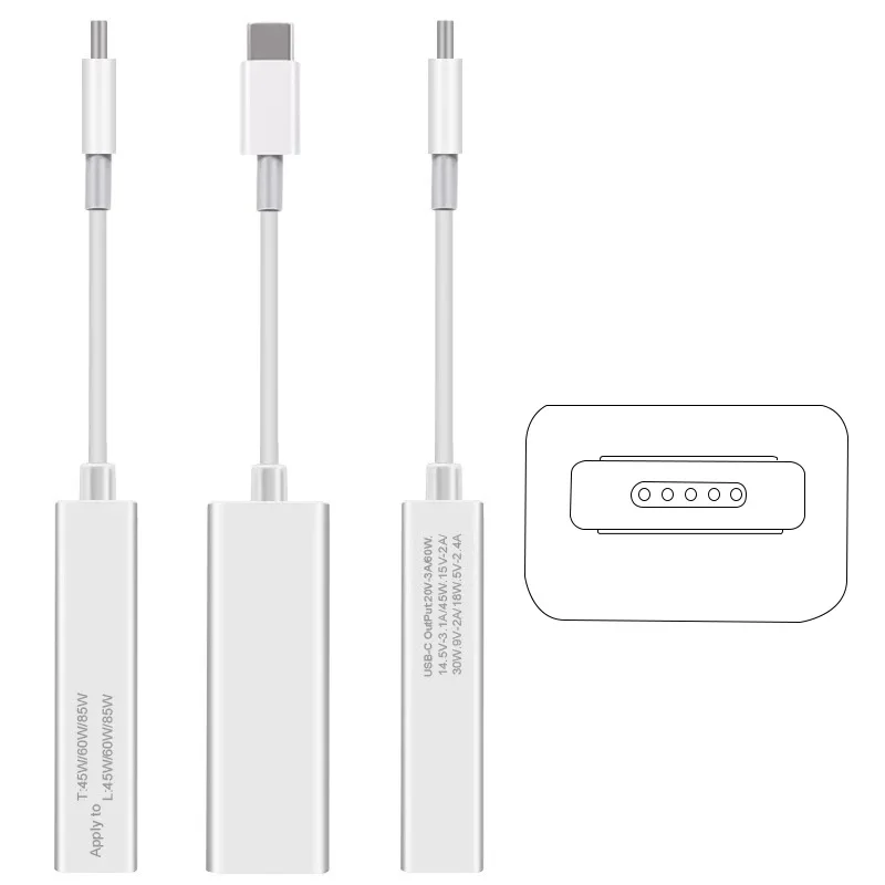 Comprar Adaptador de carga convertidor USB tipo C a dispositivos Magsafe 1 y 2 Compatible con Macbook Pro / Air