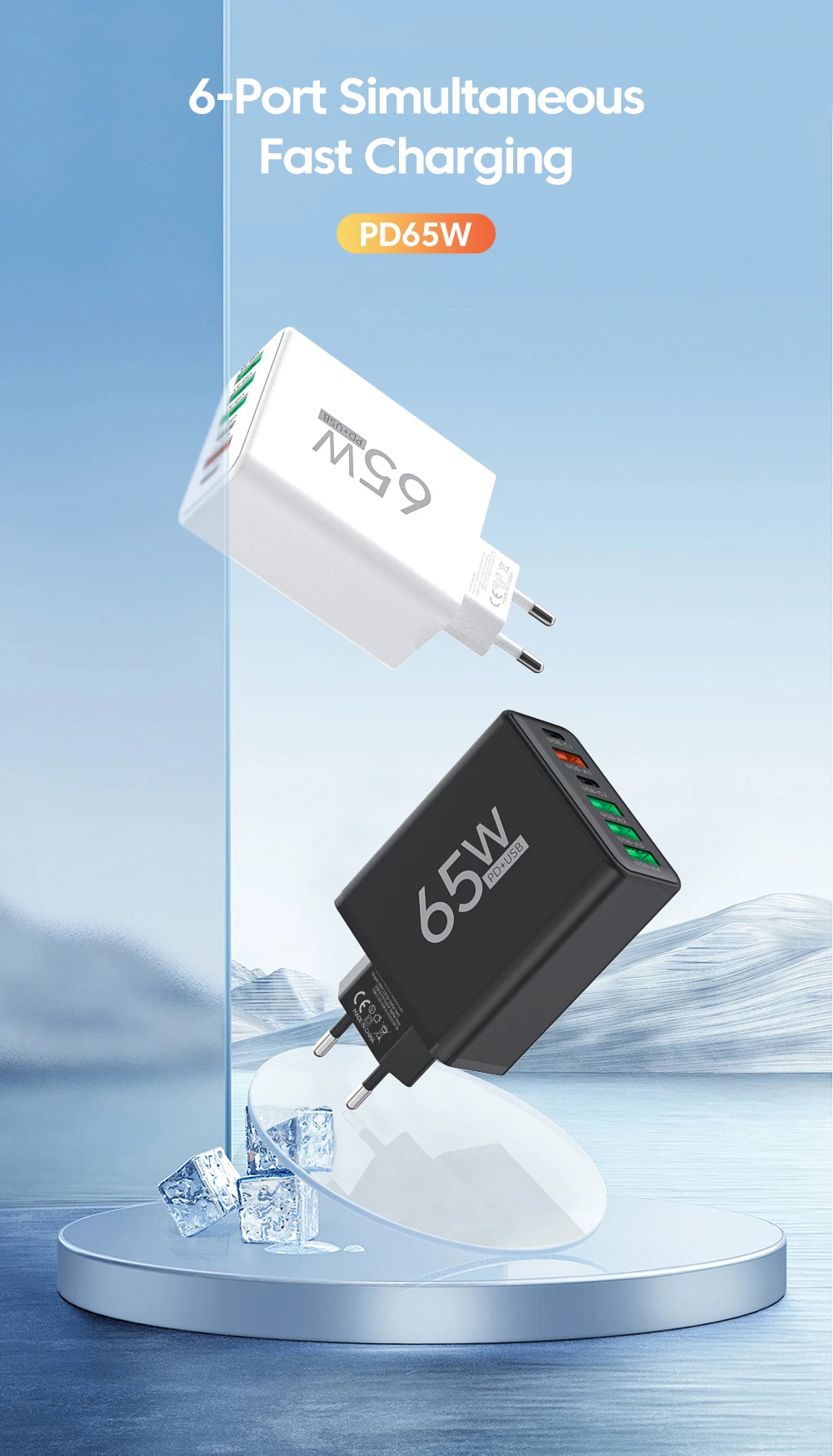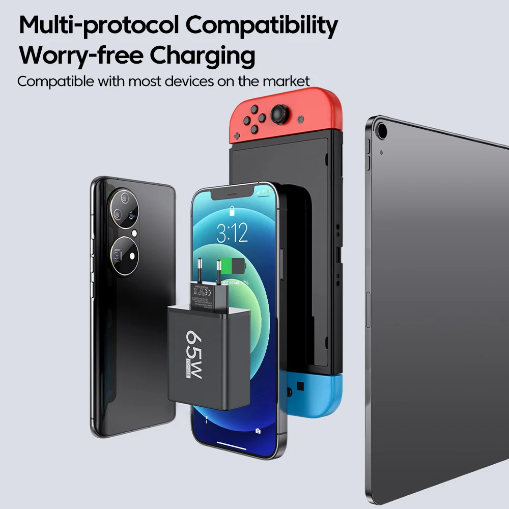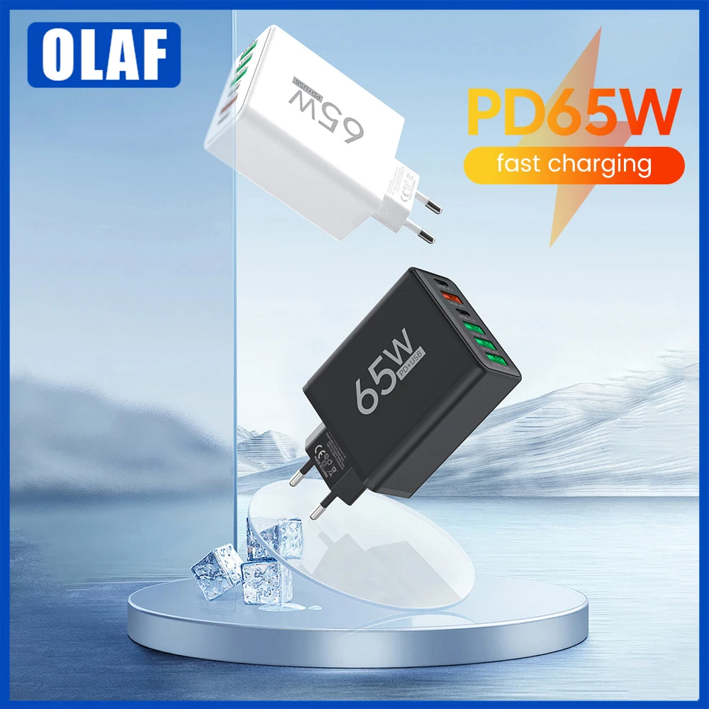 Comprar Adaptador de carga rápida para teléfono móvil, de 65w cargador USB, 4A + 2C, para Xiaomi, iPhone, Huawei, Samsung, Oneplus, Realme, accesorios