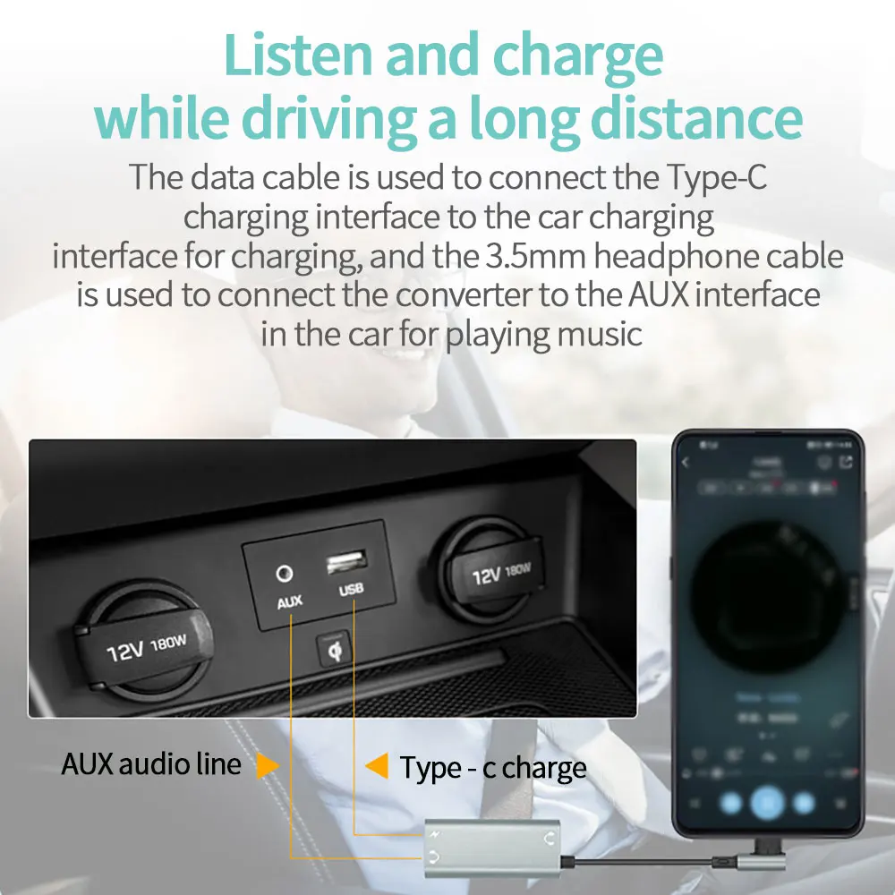 Solo con este adaptador, obtendrá un puerto tipo c, un puerto auxiliar de audio de 3,5mm para auriculares y un puerto de carga rápida PD 3,0, te permite jugar o escuchar música mientras cargas tu teléfono. Además, la función de voz y llamada está disponible.