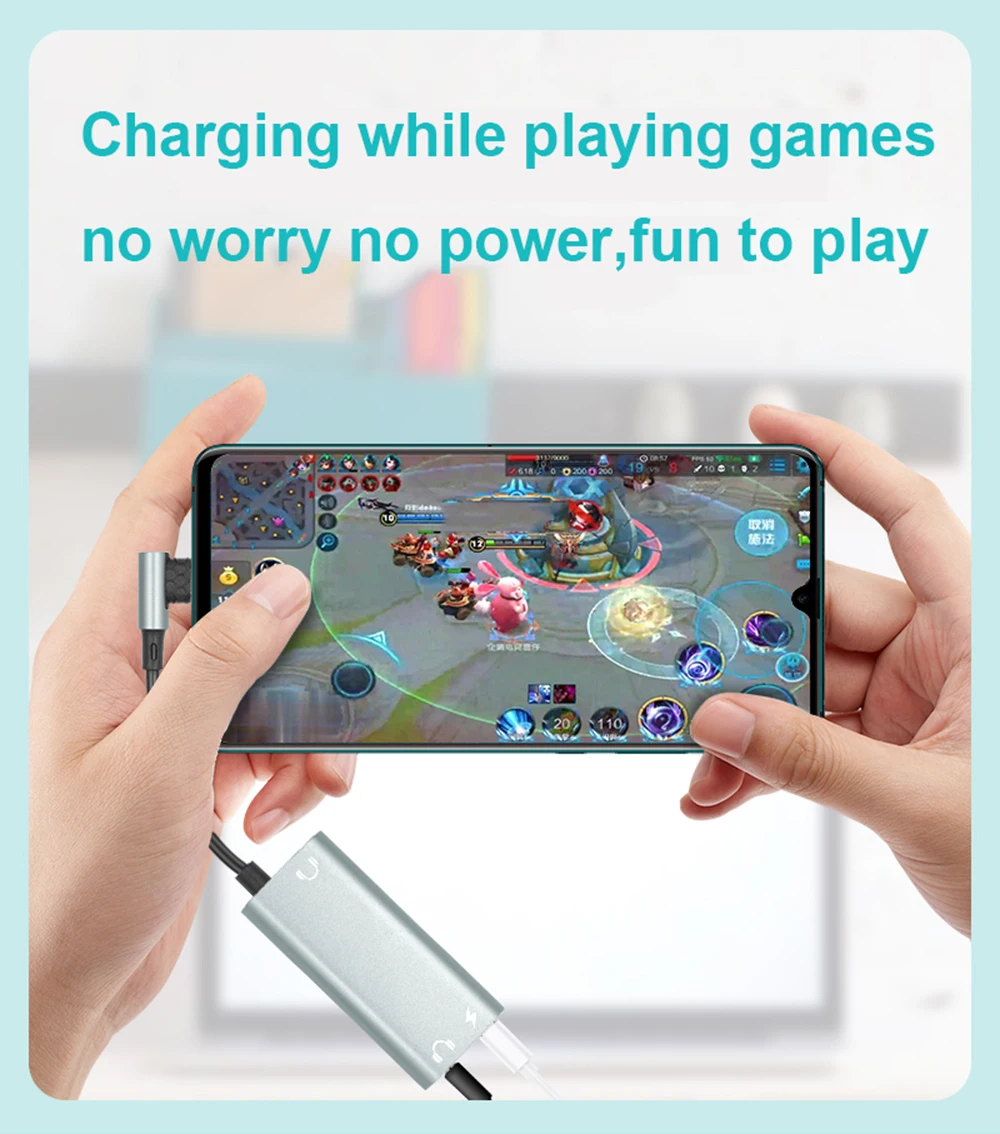 Solo con este adaptador, obtendrá un puerto tipo c, un puerto auxiliar de audio de 3,5mm para auriculares y un puerto de carga rápida PD 3,0, te permite jugar o escuchar música mientras cargas tu teléfono. Además, la función de voz y llamada está disponible.