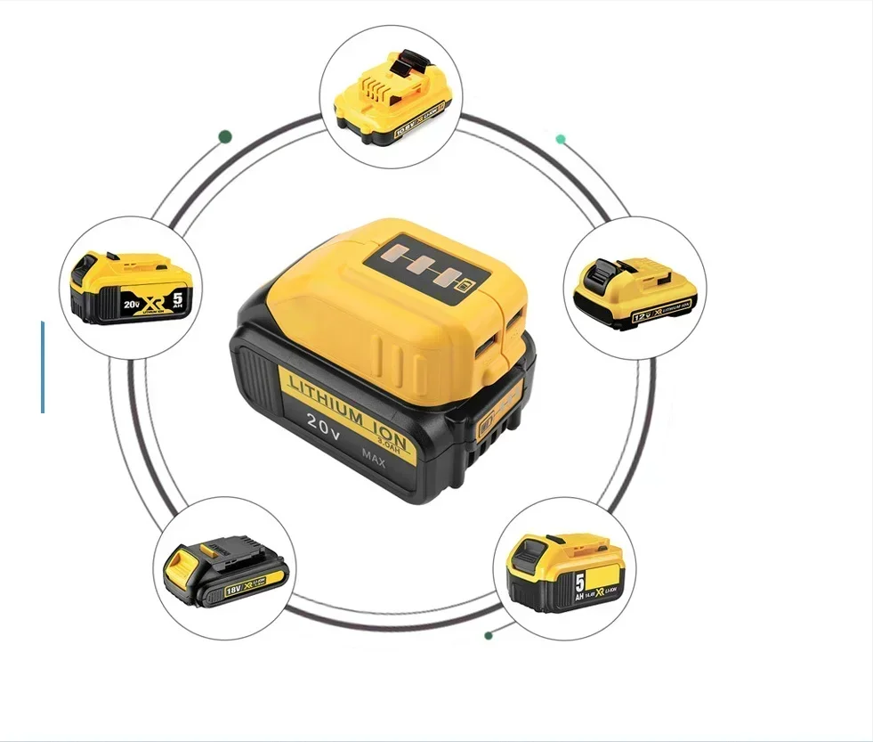 Adaptador de cargador de batería DCB090 Compatible con baterías de iones de litio Dewalt 12/14.4/18/20V Cargador portátil de fuente de alimentación USB dual- Transforma tu batería XR en un cargador portátil, compatible con baterías de iones de litio Dewalt de 10,8 V/14,4 V/18 V.Adaptador de fuente de alimentación USB de repuesto compatible con baterías Dewalt XR MAX DCB200 DCB201 DCB180 DCB203 DCB204 DCB205 DCB120 DCB127 DCD710 DCB125, etc. (no para baterías Ni-Cd o Ni-Mh)