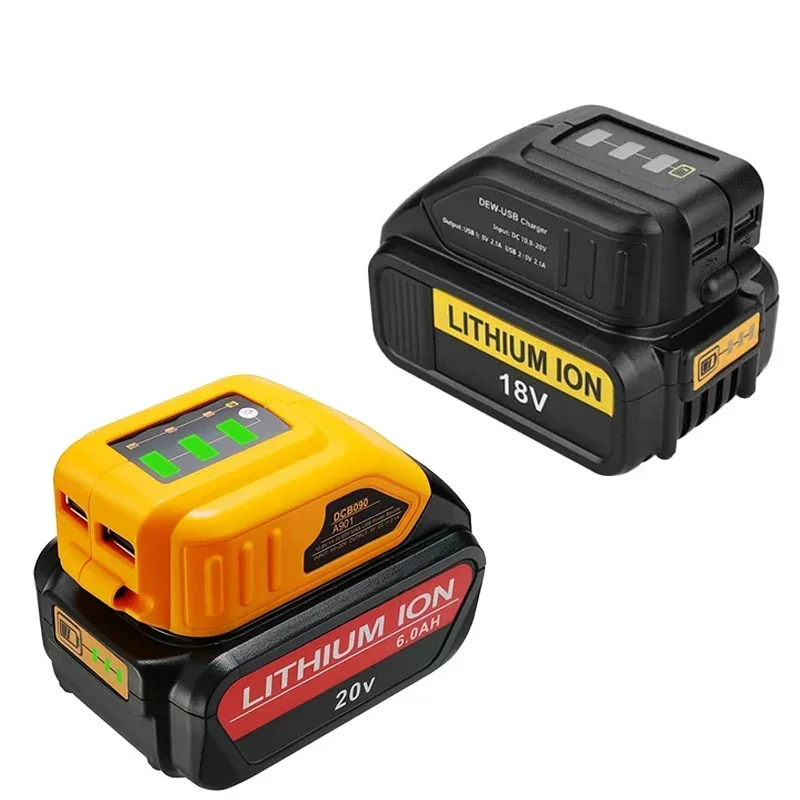 Comprar Adaptador de cargador de batería DCB090, Compatible con baterías de iones de litio Dewalt 12/14,4/18/20V, fuente de alimentación USB Dual, cargador portátil