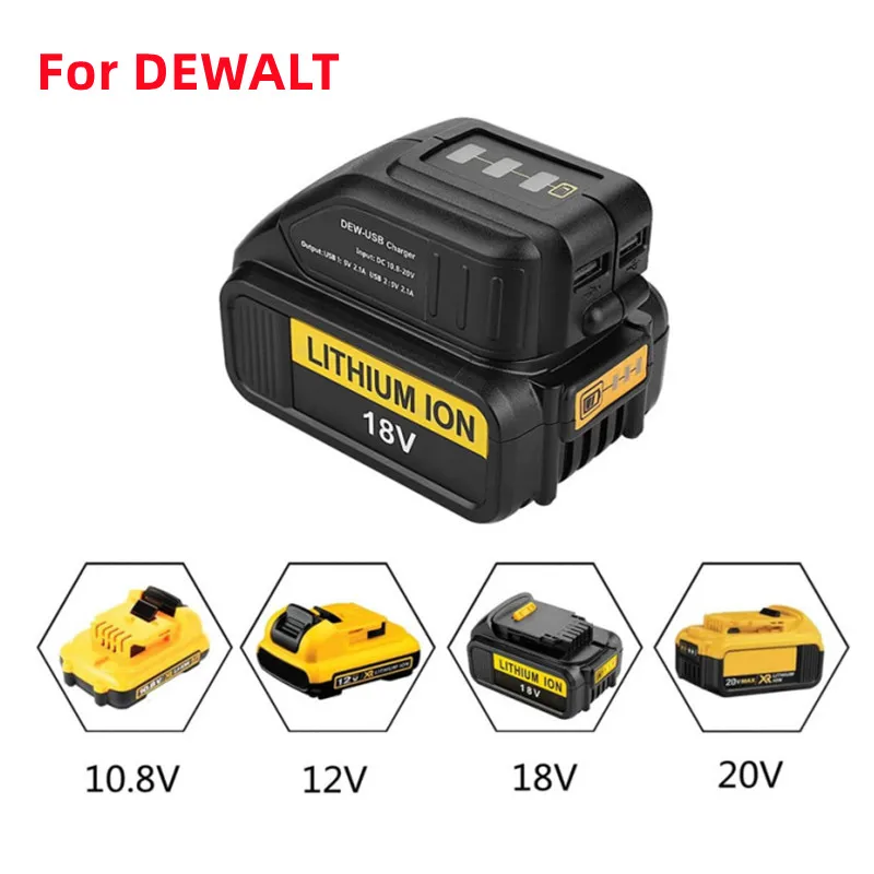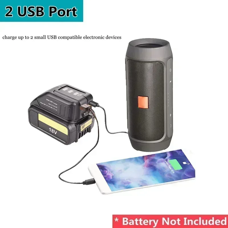 Adaptador de cargador de batería DCB090 Compatible con baterías de iones de litio Dewalt 12/14.4/18/20V Cargador portátil de fuente de alimentación USB dual- Transforma tu batería XR en un cargador portátil, compatible con baterías de iones de litio Dewalt de 10,8 V/14,4 V/18 V.Adaptador de fuente de alimentación USB de repuesto compatible con baterías Dewalt XR MAX DCB200 DCB201 DCB180 DCB203 DCB204 DCB205 DCB120 DCB127 DCD710 DCB125, etc. (no para baterías Ni-Cd o Ni-Mh)