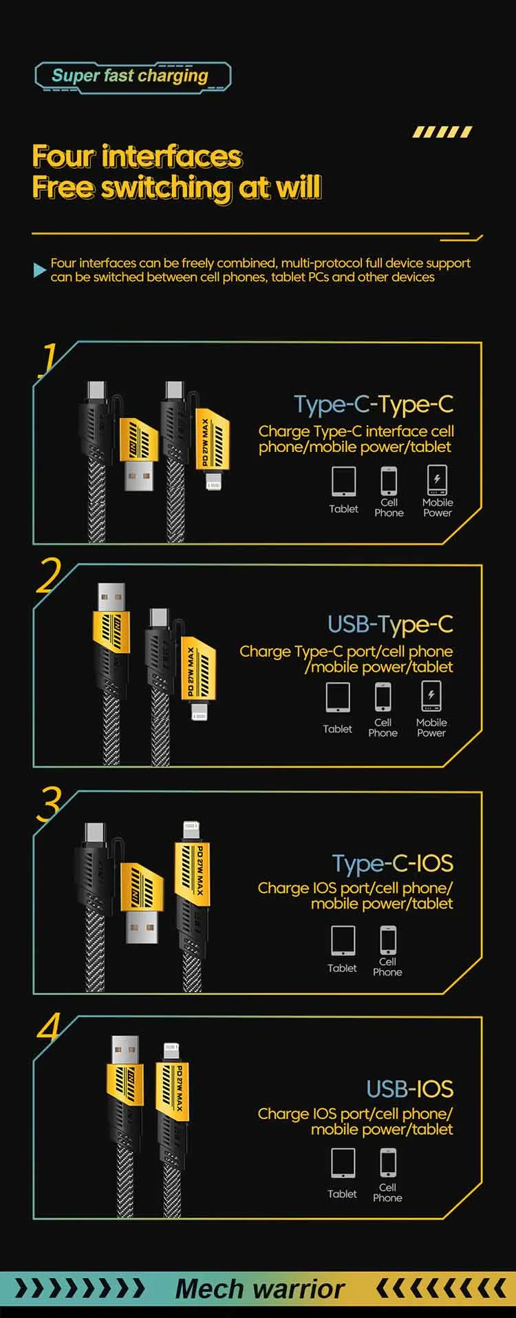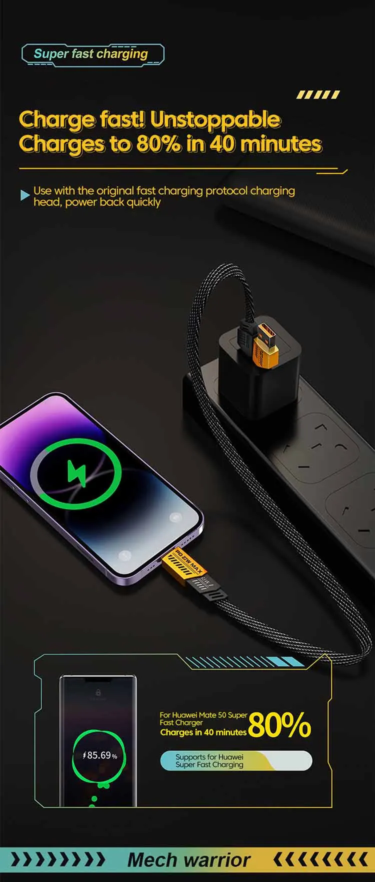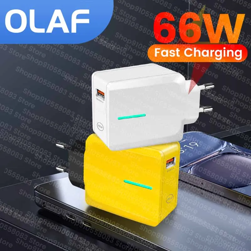 Comprar Adaptador de cargador de carga súper rápida QC5.0, cargador de pared USB de 66W para Honor, Xiaomi, Huawei, 4 en 1, Cable de carga tipo C a tipo C