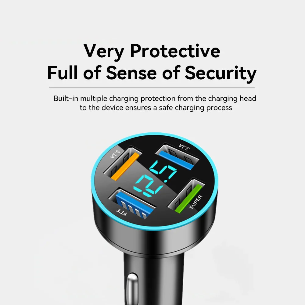 3.Carga rápida QC3.0: equipado con 4 puertos USB (carga súper rápida + 3x3,1 A), este cargador de teléfono para automóvil puede proporcionar una carga rápida para hasta 4 dispositivos electrónicos diferentes simultáneamente.Es compatible con la mayoría de los teléfonos inteligentes convencionales y puede cargar rápidamente varios dispositivos a la vez.